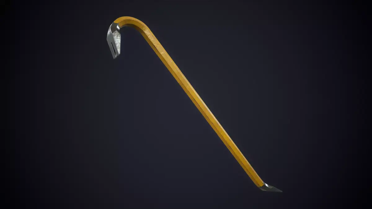 This model features a classic hexagonal steel crowbar with a curved claw and a flat prying end.