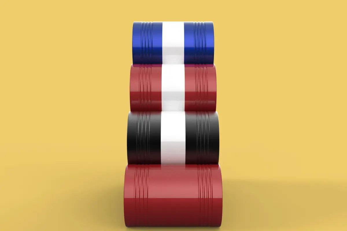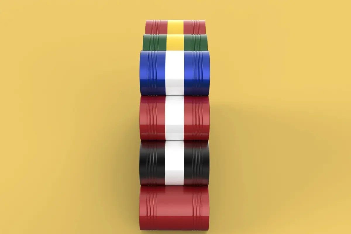 Bulk Storage: Indicates a need for storing a significant quantity of fuel oil.Categorization: Different colors likely represent different grades, types, or batches of fuel oil.Space Management: Stacking is a common method for maximizing storage capacity.Safety Considerations: Proper stacking procedures and handling of potentially flammable materials are crucial.Inventory Management: Color-coding can aid in visually managing fuel oil inventory.Possible Scenarios: