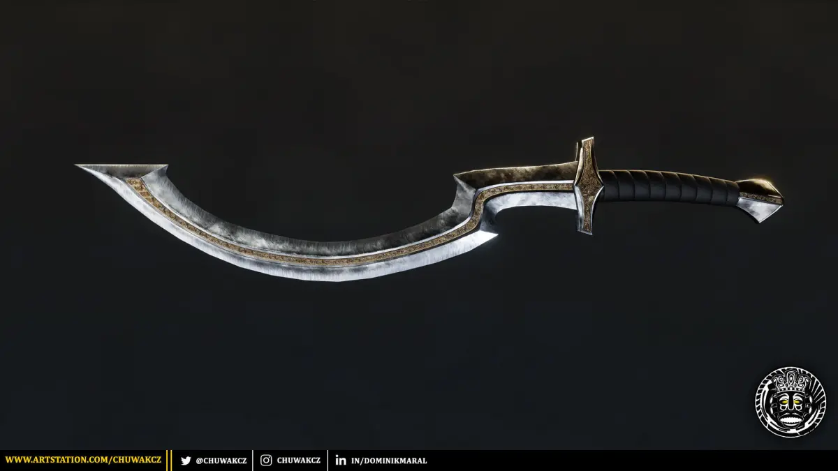 This is a realistic model of an ancient egyptian curved sword called Khopesh. The design of this curved blade is original and based on multiple historical references. I’ve put a lot of effort into this model since I’m very passionate about ancient melee weapons. I’ve also focused heavily on the usability part and as a result this model is perfectly scaled to be used ingame wielded by a character. The sword model was created and sculpted in Blender. The textures were created in Substance Painter and are fully PBR and game ready. They were made with realism in mind and are full of small detail and surface imperfection to reach this goal.