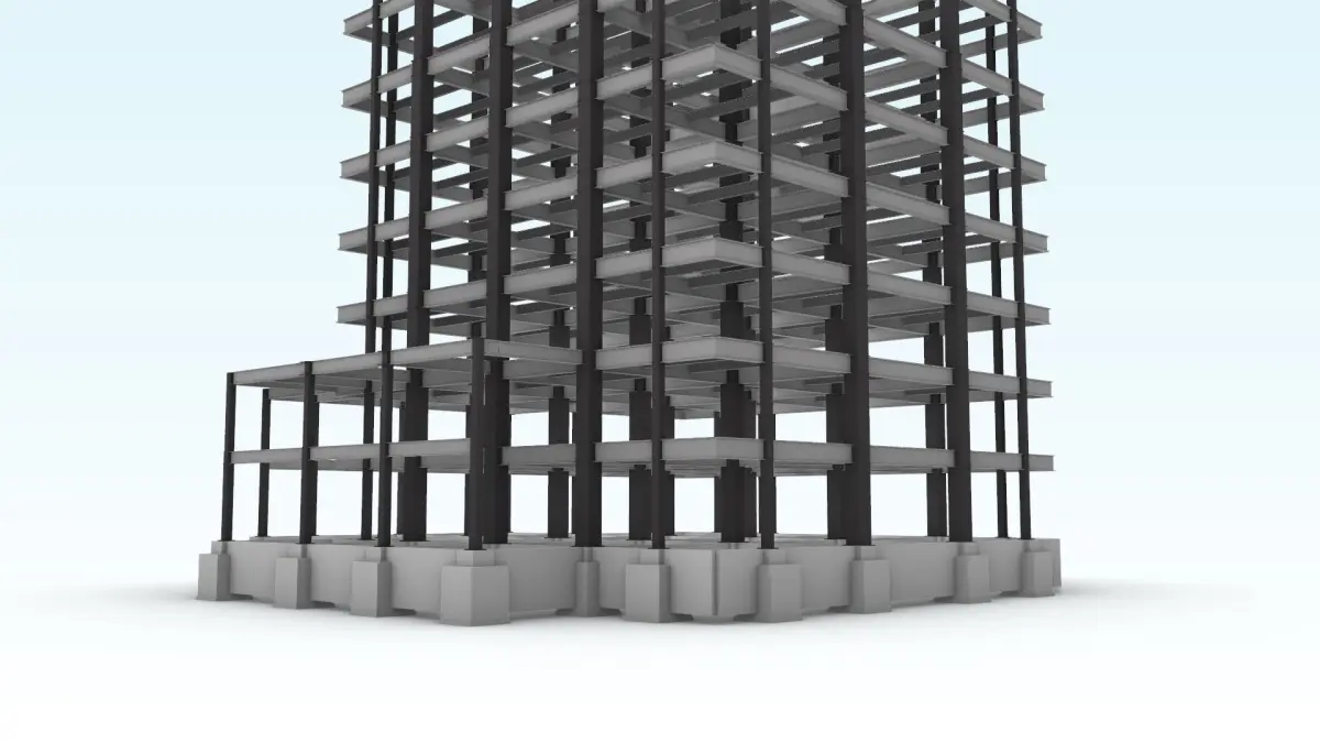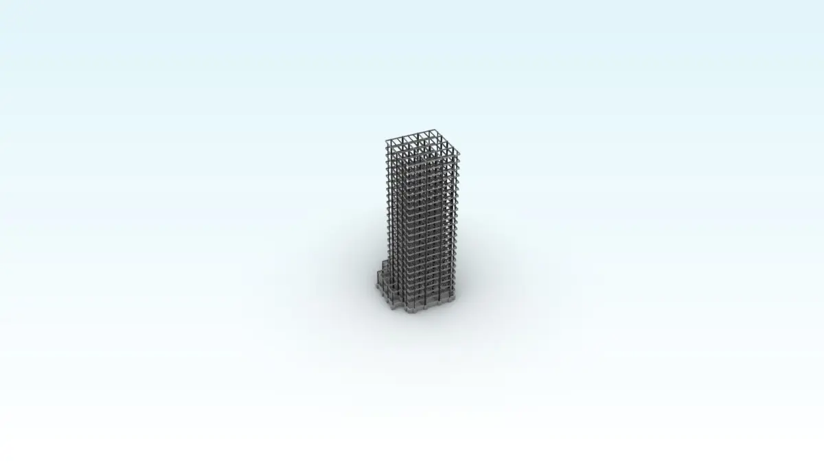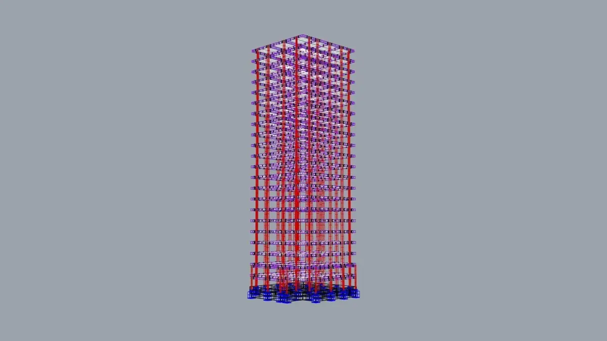 This building is a high-rise steel-frame construction with 22 floors and floor-to-floor height ranging from 4.2 to 3.8 meters. The long and short side dimensions are both 26 meters. The columns have a width of 800 to 400 millimeters, and the H-steel beams used include H-800x300, H-700x300, H-588x300, and H-500x200.