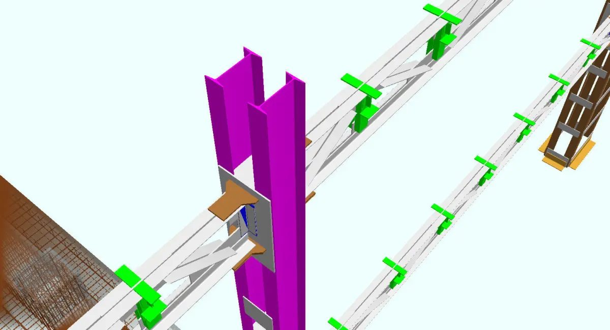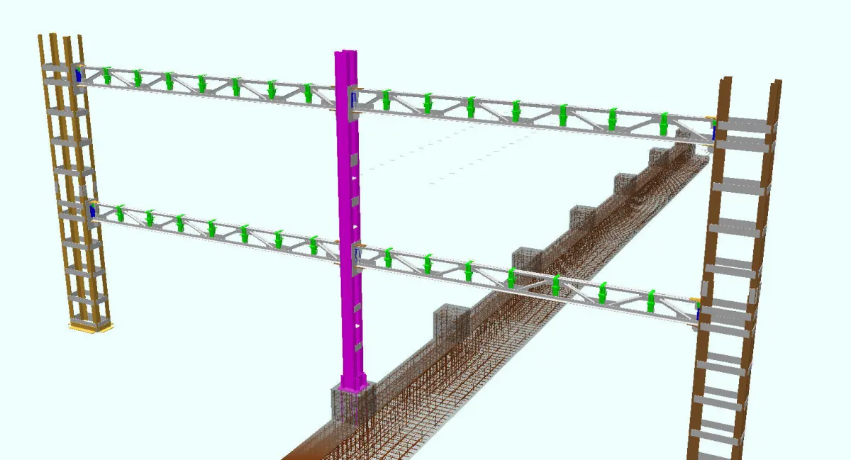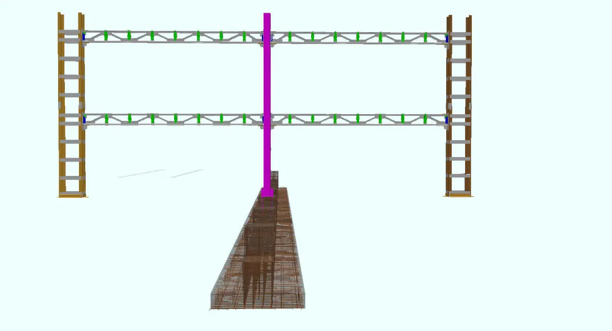 The construction of the metal frame. The frame consists of a foundation, steel columns made of I-beams and corners, as well as the construction of a metal truss for a span of 8 m. Step installation of frames 6m. The design is intended for the device of overlapping of industrial shop. The design is carried out with the calculation of elements and corresponds to the building standards