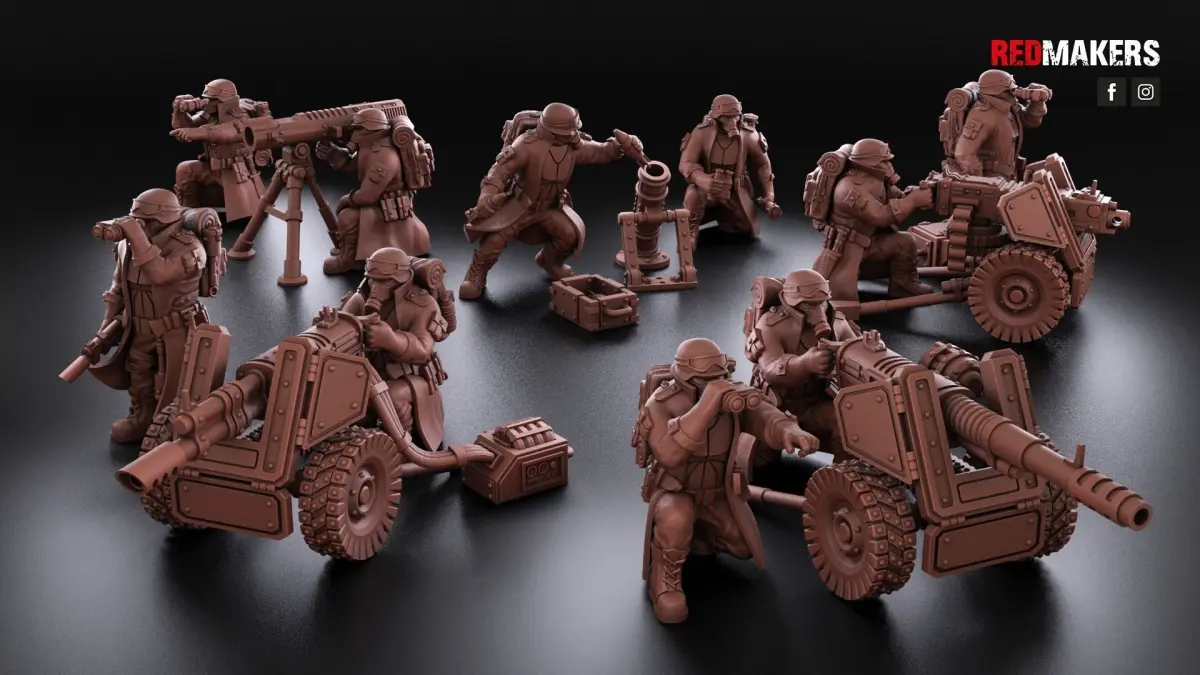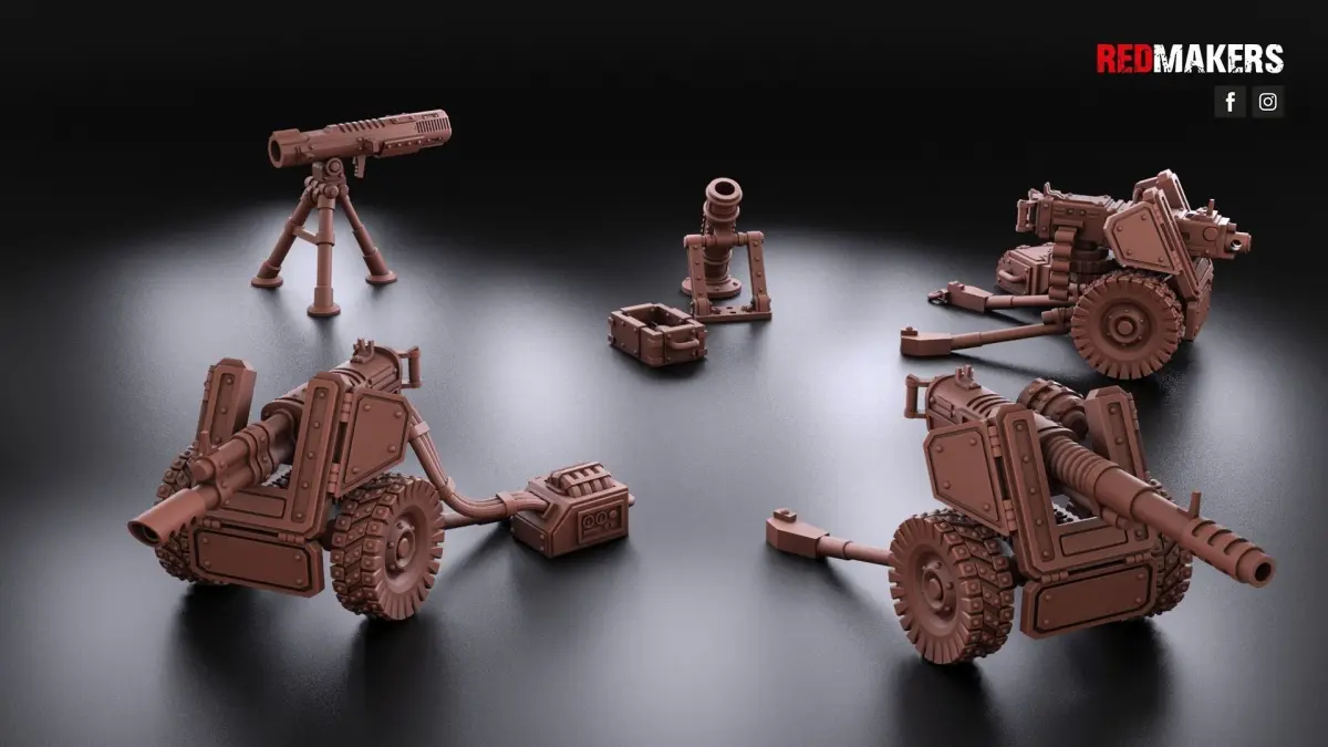 The heavy support squad has five types of heavy weapons. Scaled for 28 mm tabletop.