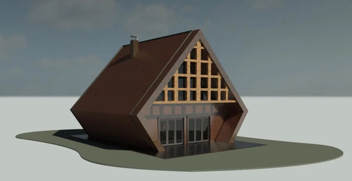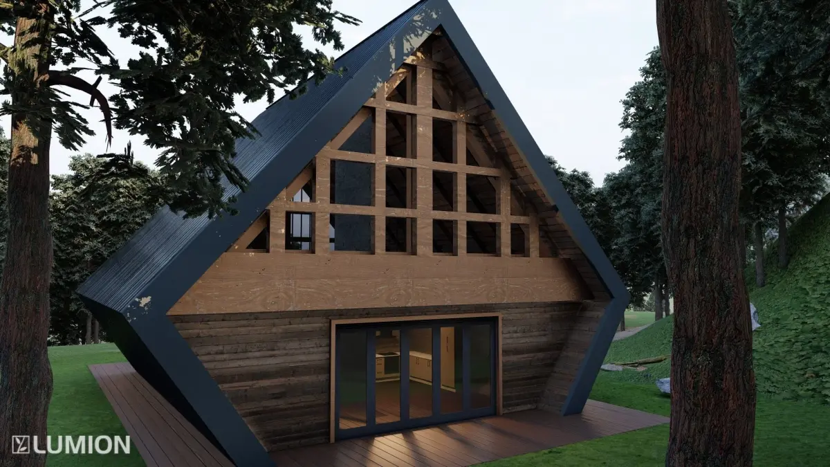 Steel Modular A Shape House model in Revit 2023 render in Lumion 12.5This file includes:
