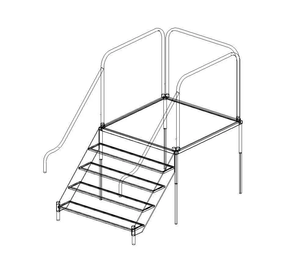 THIS STAIR IS MADE OF STEEL ANGLES AND MESH