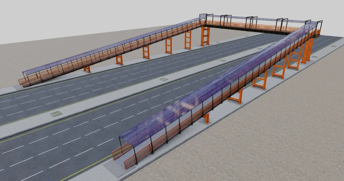 Pedestrian Overpass With Flat Type Ramp