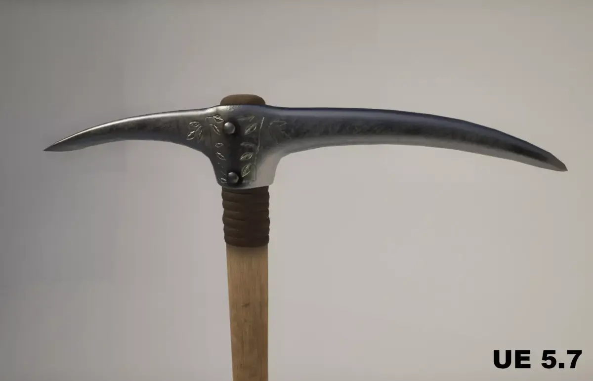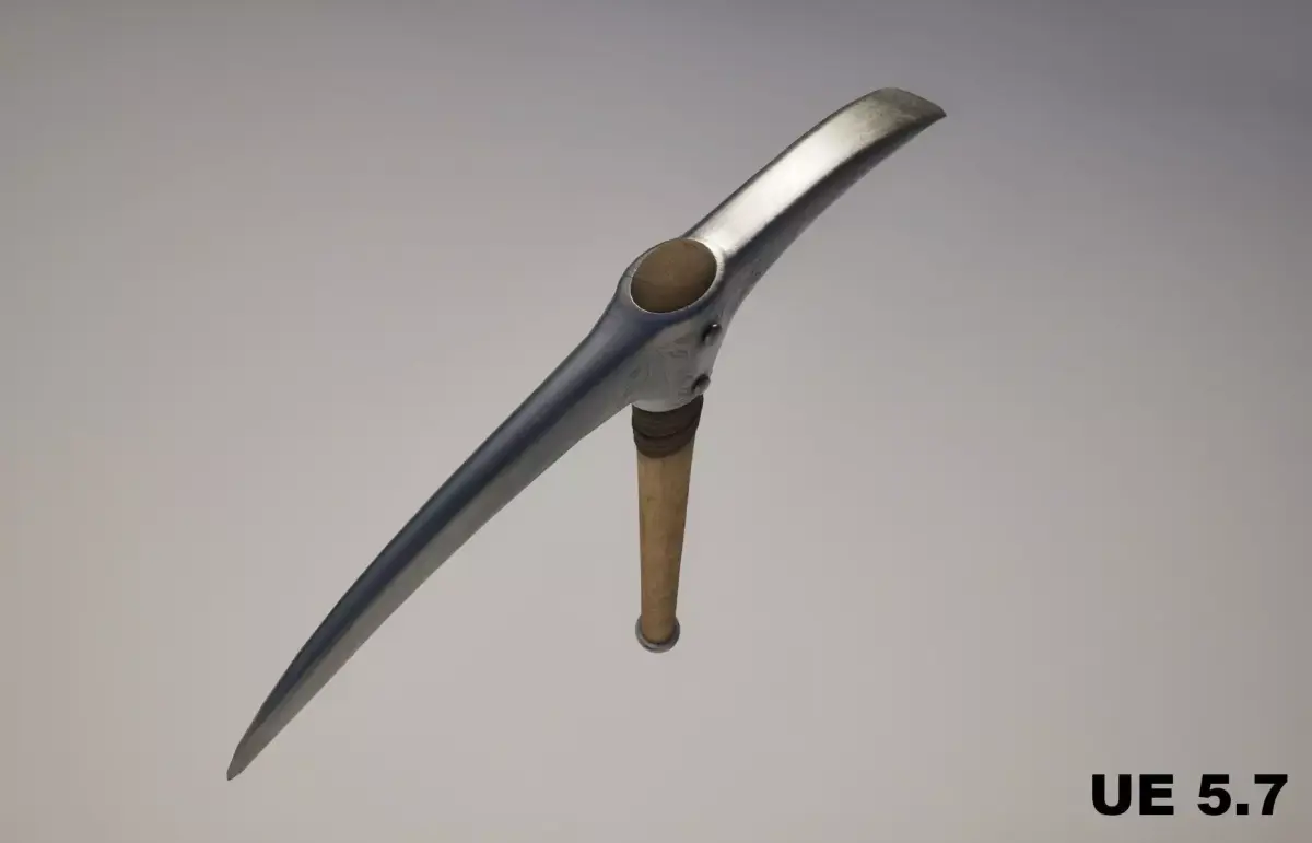 High-quality realistic steel pickaxe designed for real-time applications such as games, cinematics, and interactive environments.