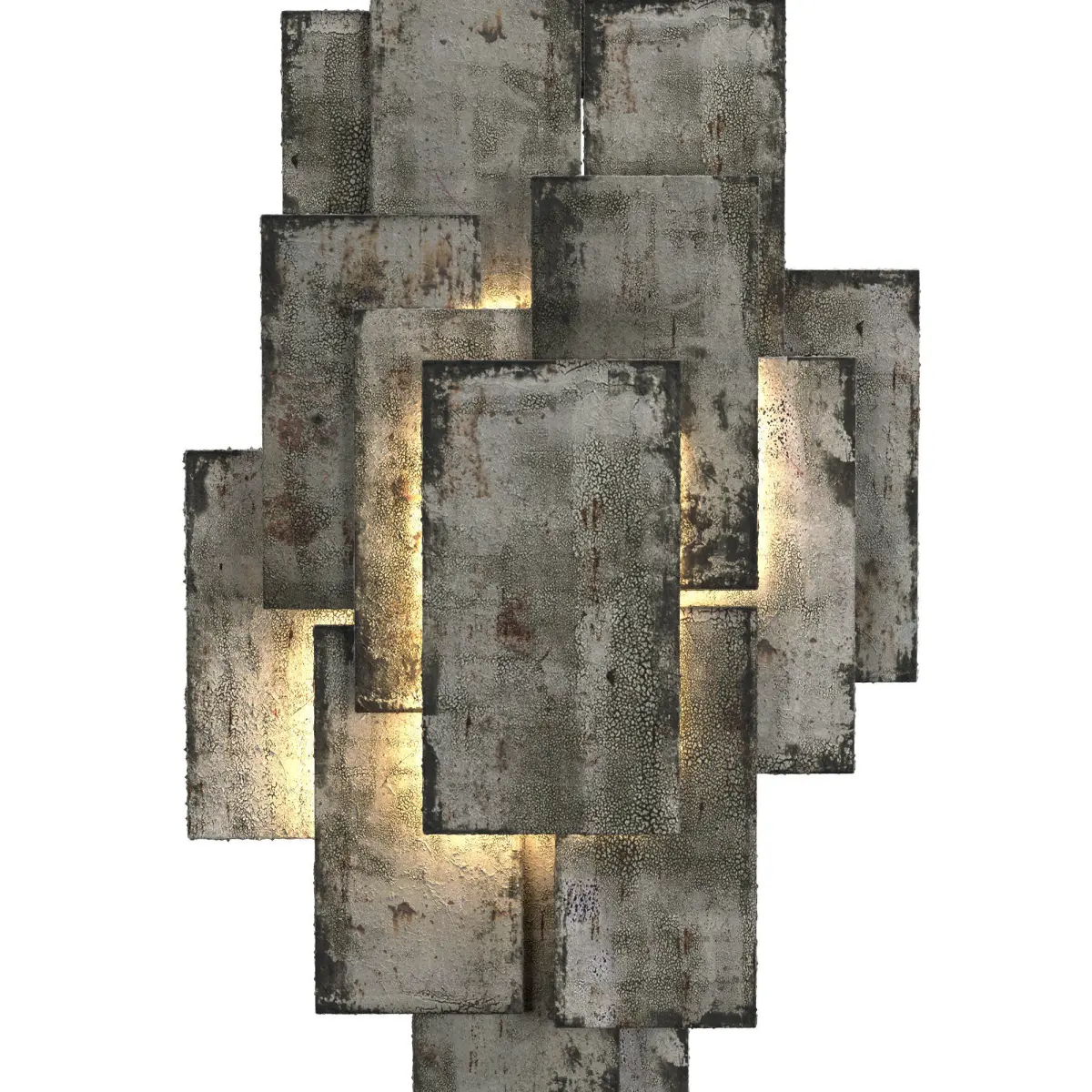 Name: Steel Plates Wall LightType: modelFormat: 3Ds Max 2013Export: FBX, OBJ, 3DS, MATRender: VRay (3.x), Corona (3)Polys: 6300Verts: 6384Matclasses: VRayMtl,CoronaMtlUnits: MillimetersDimension: 395.4 x 64.84 x 897.04Modeller: Artem RAdionovPreset: FULL CUSTOMManufacturer: PORTA ROMANALights: YesDate: 2023.10.31Viruses: Clean, tested by PruneScene!Preview: YesTags: steel, plates, wall, light, porta, romana, metal, rust, defects, scratches, sculpture, installation, lighting, loft, industrial