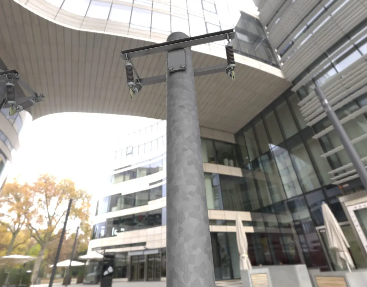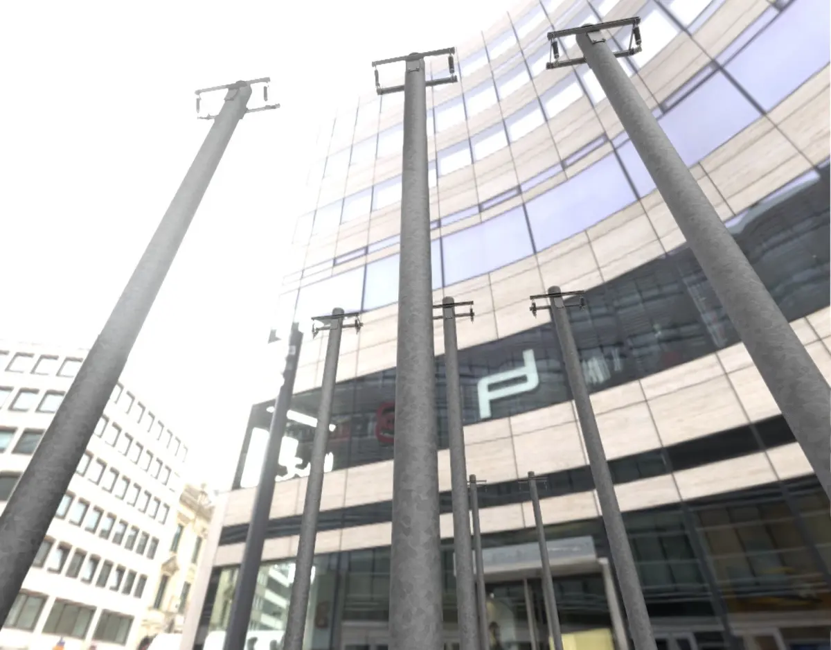 Hier ist ein Stahlstrommast ohne Leiter (Objekt 063) aus unserer modularen Strommasten-Kollektion.