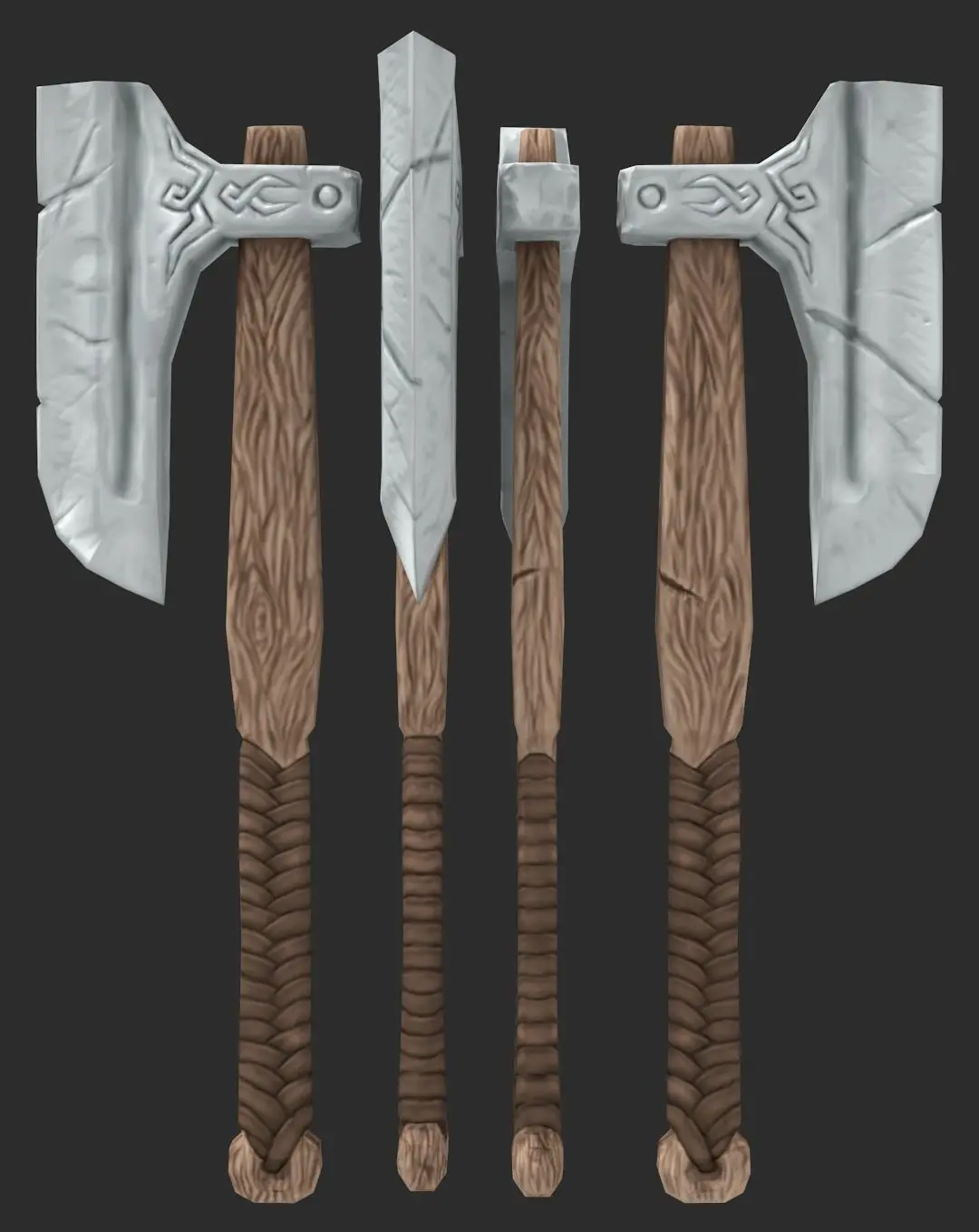 One-handed battle axe.Completed in the blender 3d.Rendring is standard.Maps 2048x2048px :Speculary,Diffusion,Normal (Tangent).The light source is a standard sun blender.