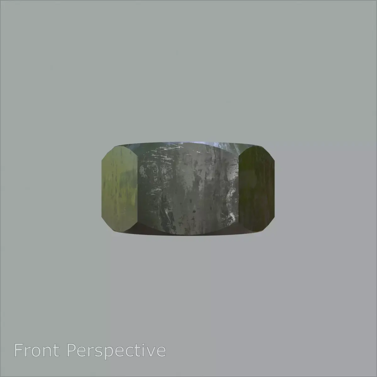 A realistic and highly detailed 3D model of a steel-stained M8 hex nut, built to precise engineering measurements as shown in the specifications. This model is perfect for industrial visualization, manufacturing simulations, CAD projects, or any mechanical-themed 3D scene.