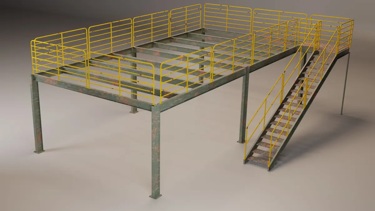This is a steel structure mezzanine 5 x 10 meters.The general structure was modeling with W beams, the randrails was modeling with mechanical pipe and the stairs was modeling with bended plates.The mezzanine is with the paint aged and rusting and the floor is dirt.This model is ideal for game prop or asset to photorealism scene post-apocalypitc.