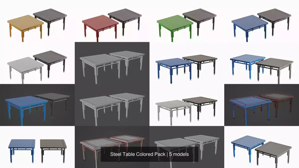 Steel Table Colored Pack ( Collection ) – Low Poly, Game Ready Asset.