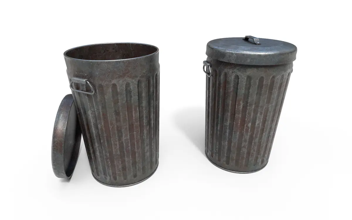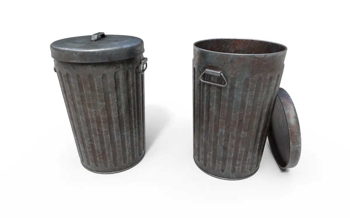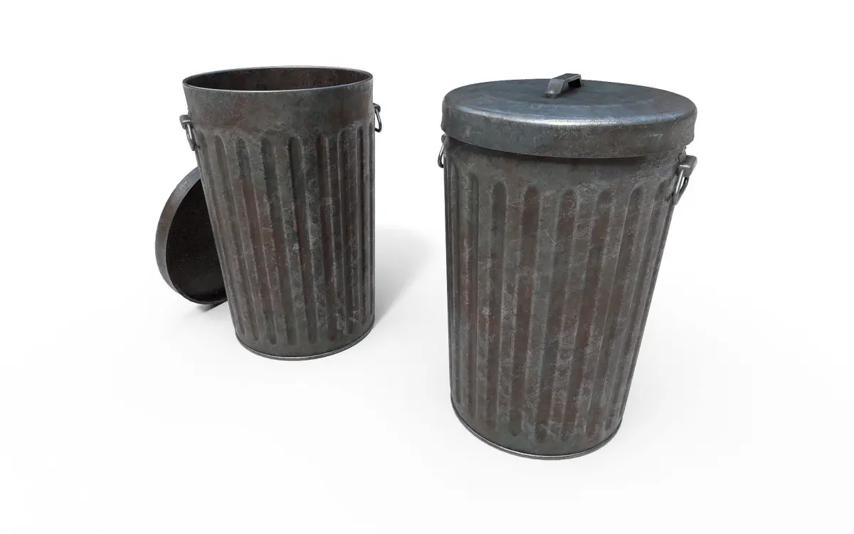 Low-poly 3D model Trash Can.Textures of the format 'PNG', size is 2048x2048.Textures: Base color/Height/Metallic/Normal/Roughness/.