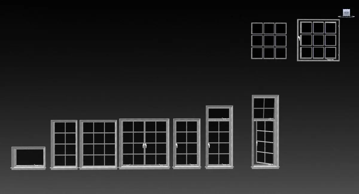 a set of deconstructed elements of fixed and casement window, which you can easily attach to each other to create custom number of sections.
