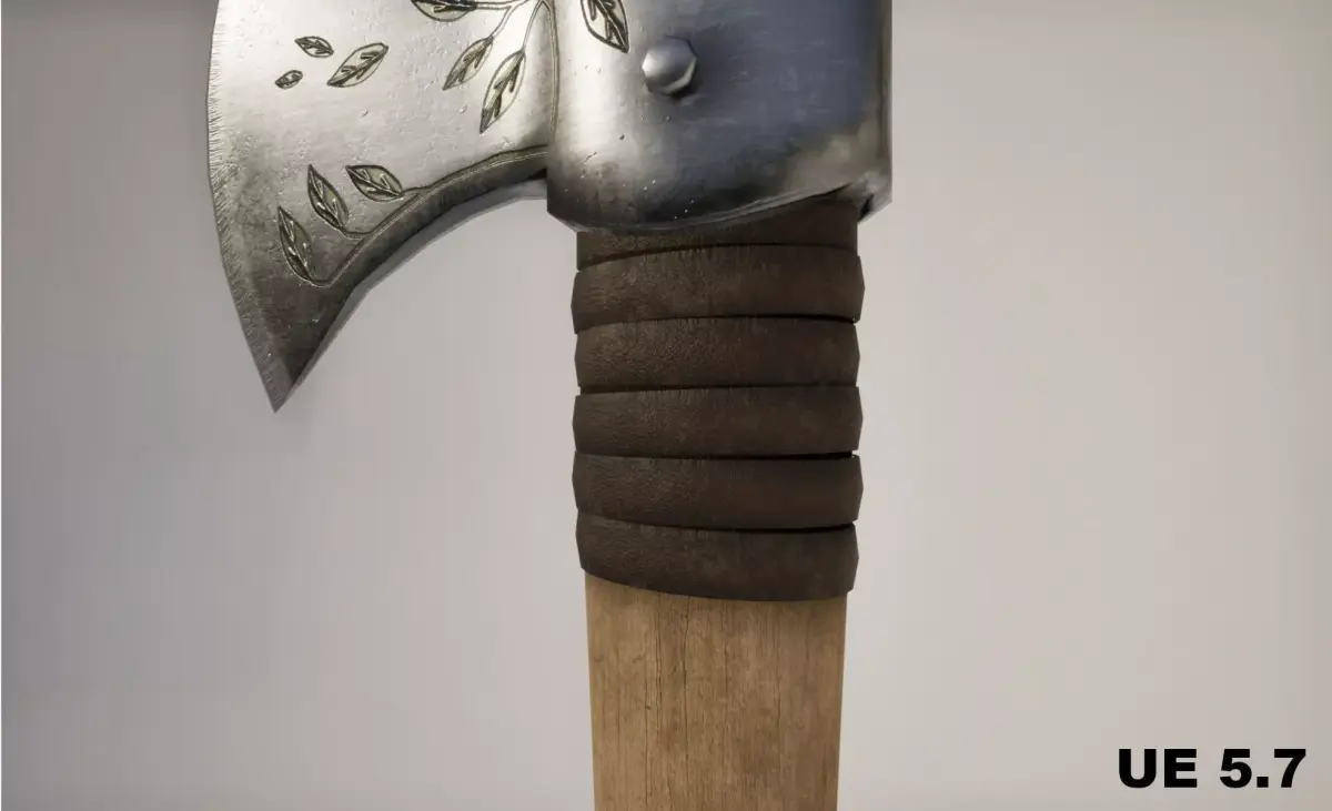 High-quality realistic steel woodcutting axe designed for real-time applications such as games, cinematics, and interactive environments.
