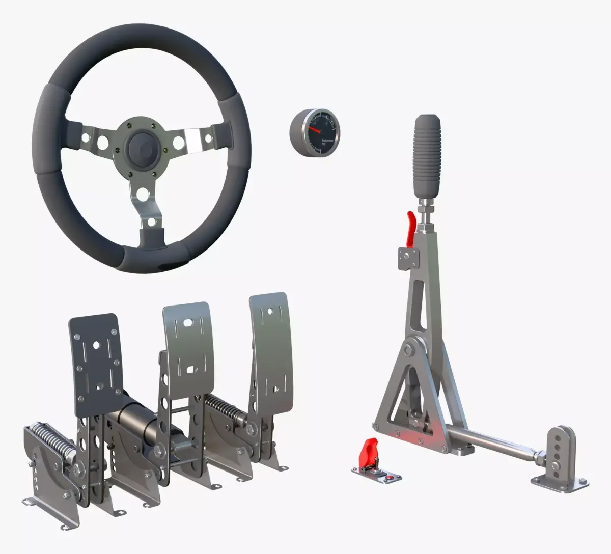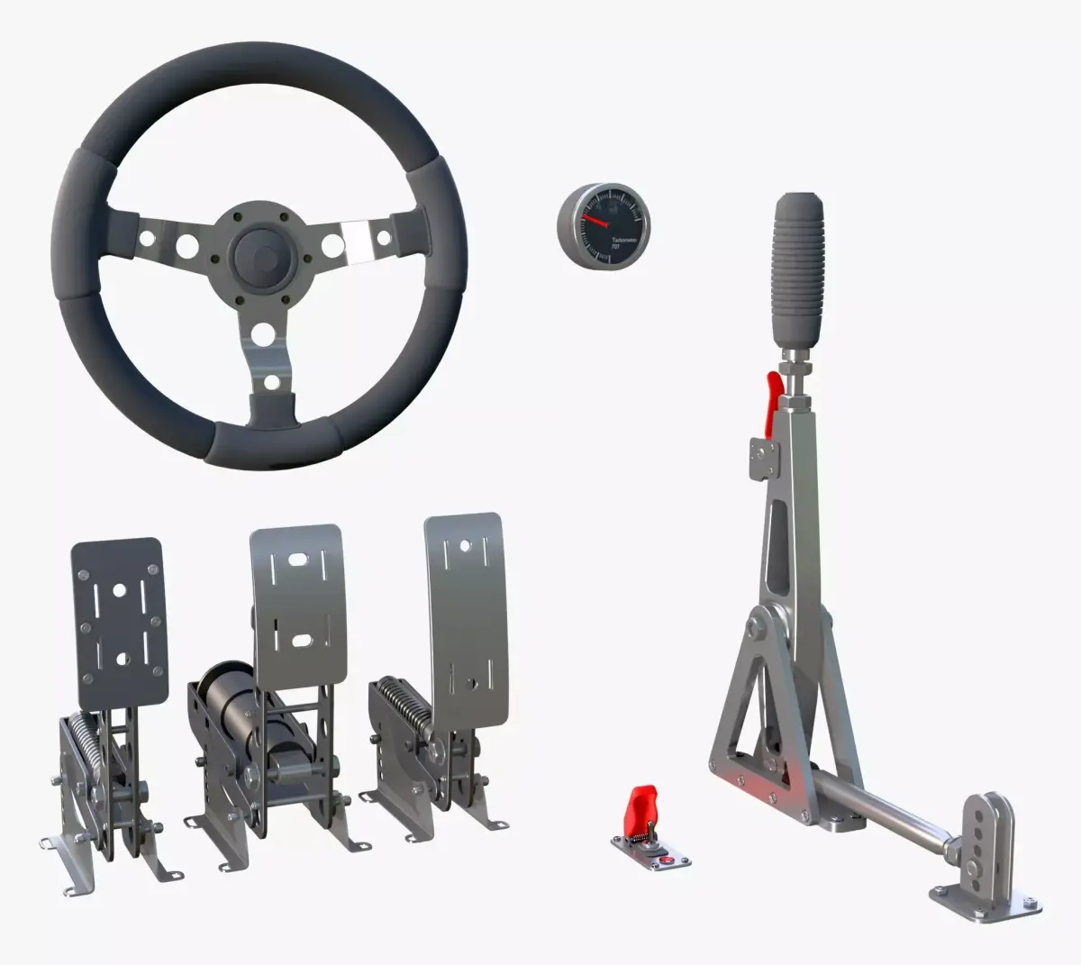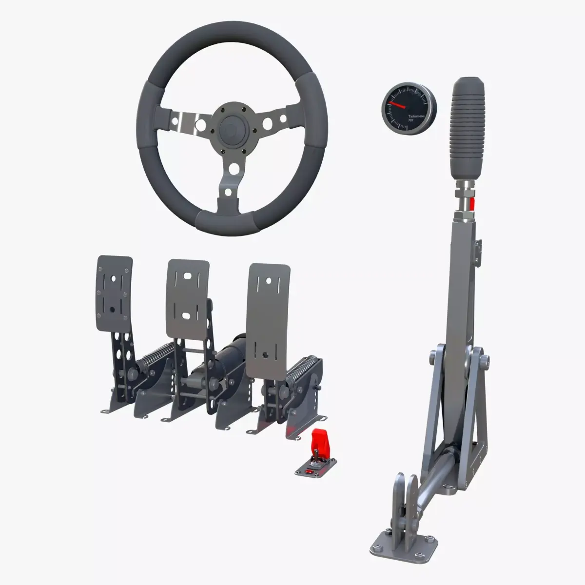 The 3D model 'Steering Wheel Pedal Handbrake Racing Kit M1' is an unbranded design made for professional projects.