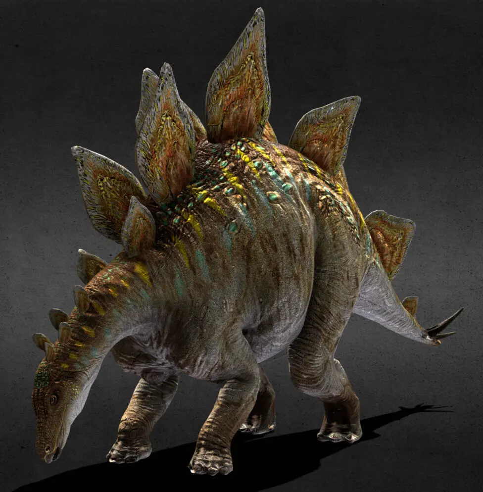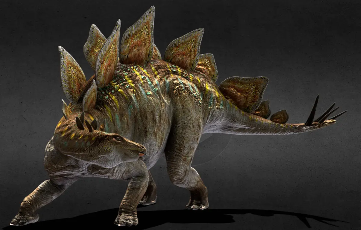 Stegosaurus was a large, plant-eating dinosaur that lived during the Late Jurassic period, around 155 to 150 million years ago. Known for its distinctive double row of large, bony plates along its back and sharp tail spikes, called the thagomizer, this armored herbivore could grow up to 30 feet long and weigh over 5 tons. Despite its massive size, Stegosaurus had a relatively small brain compared to its body, but its unique anatomy made it a formidable presence in its prehistoric ecosystem. The function of its plates is still debated—some scientists believe they helped regulate body temperature, while others think they were used for display or defense. Its powerful spiked tail, however, was undoubtedly a deadly weapon against predators like Allosaurus.