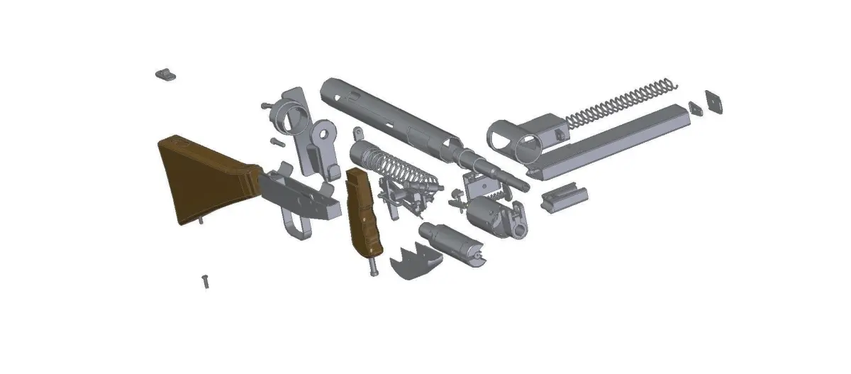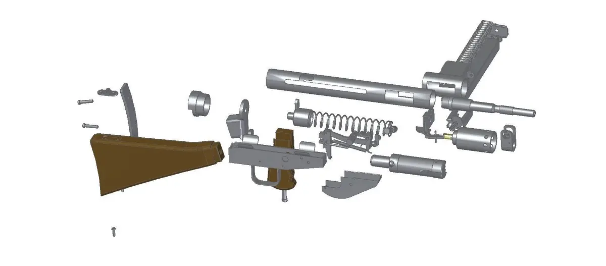 Full assembled model of STEN Mk.V and 9mm Luger bullet.