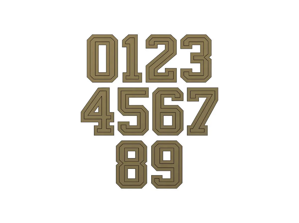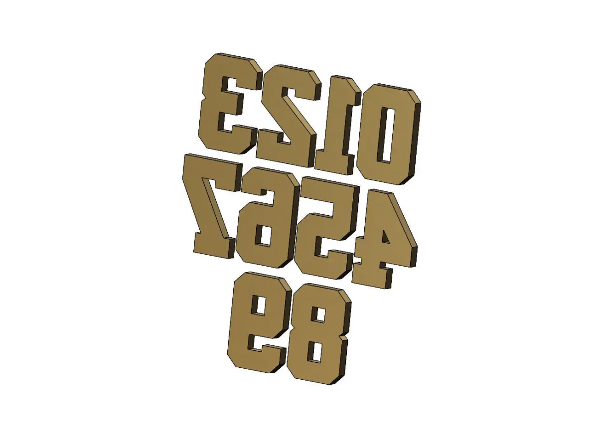 Size 18mm tall 2mm thickness for each number, to be scaled as you wish.