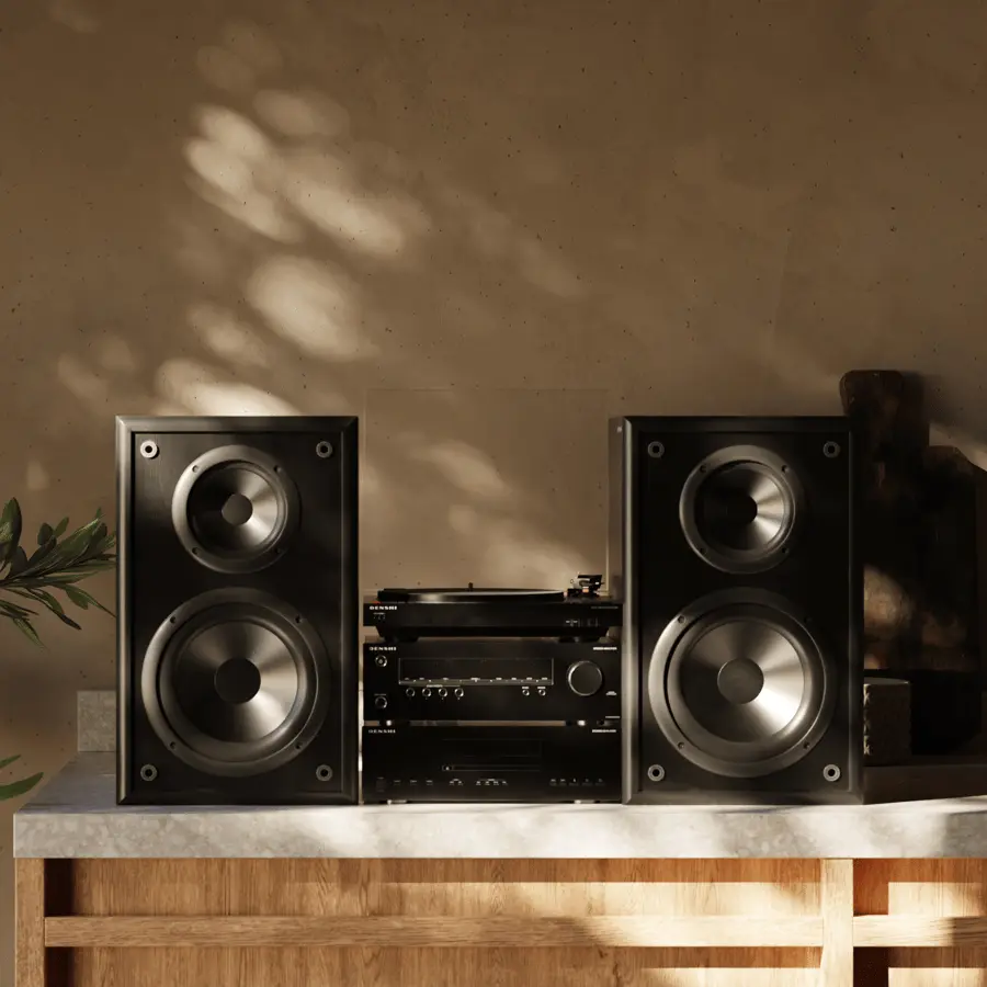 This is a set of three Home Media Models; Home Media Stereo Amplifer Model, Home Media CD Player Model, and the Home Media Speaker Model.