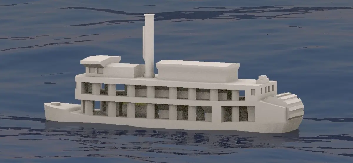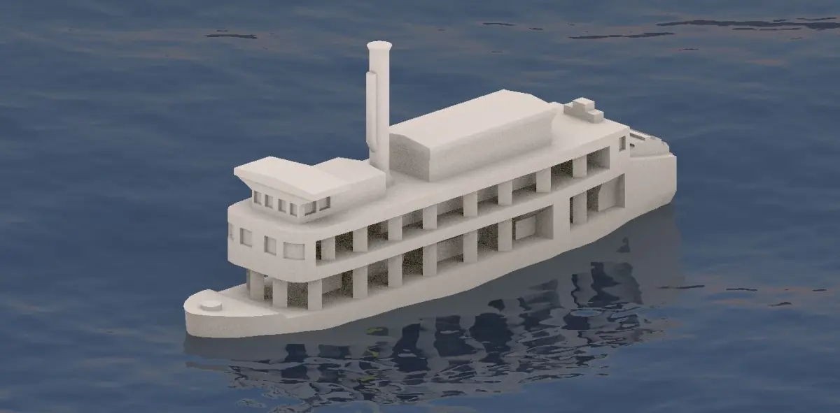 The package contains 3D files for model printing - Sternwheeler Benjamim Guimarães. Note: Stylized model for easy printing.
