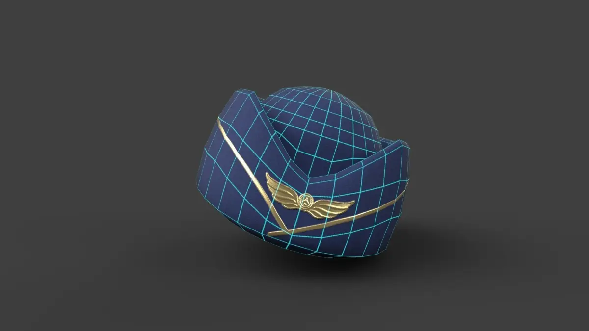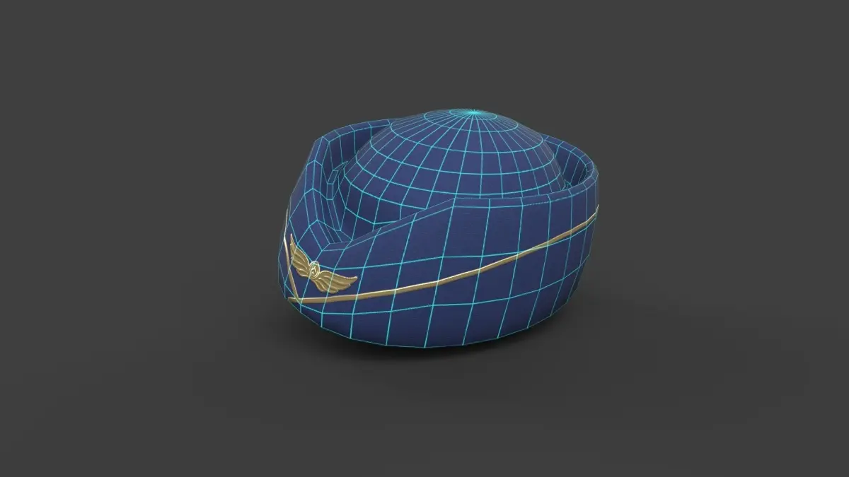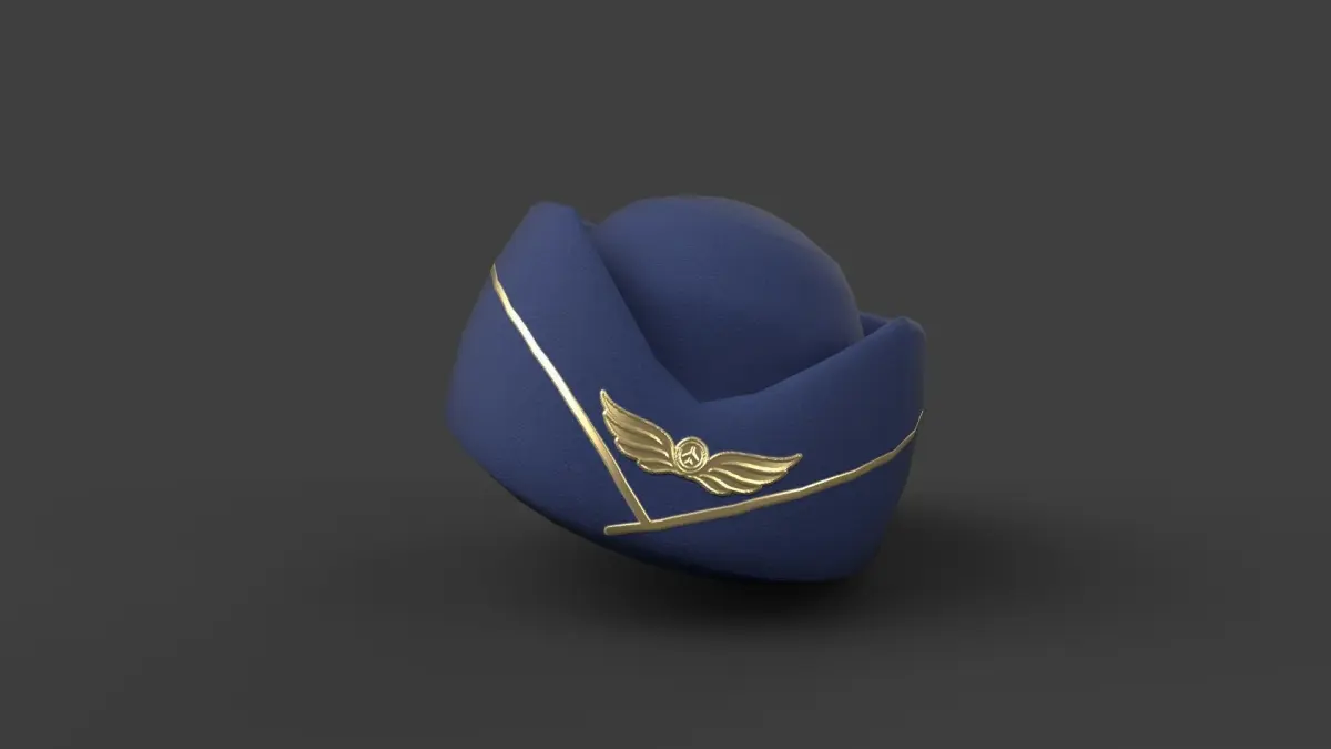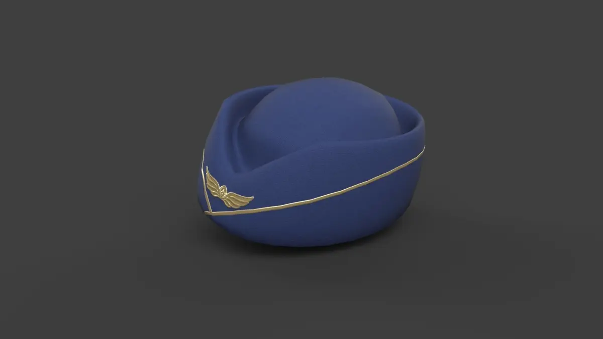 Model of stewardess hat. Real life scale. Textures in 4K .png format for standard shader Unity , HDRP or URP. Clean topology. Centered at origin. AR and VR tested.Contains unity package.