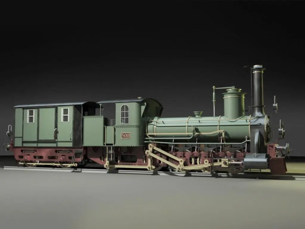 Austro-Hungarian steam locomotive from 1861, originally built by SteG Vienna. Uses a Fink-Engerth valve gear. The paint job is authentic to the period and region in which this locomotive was used.