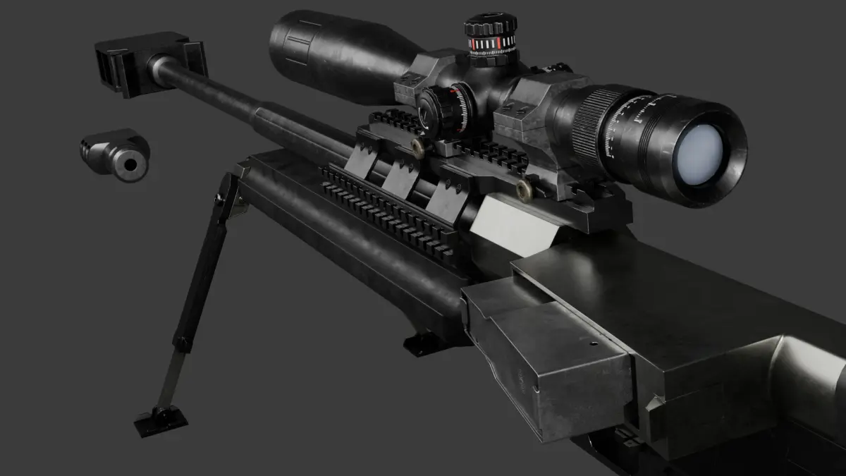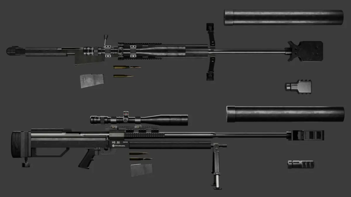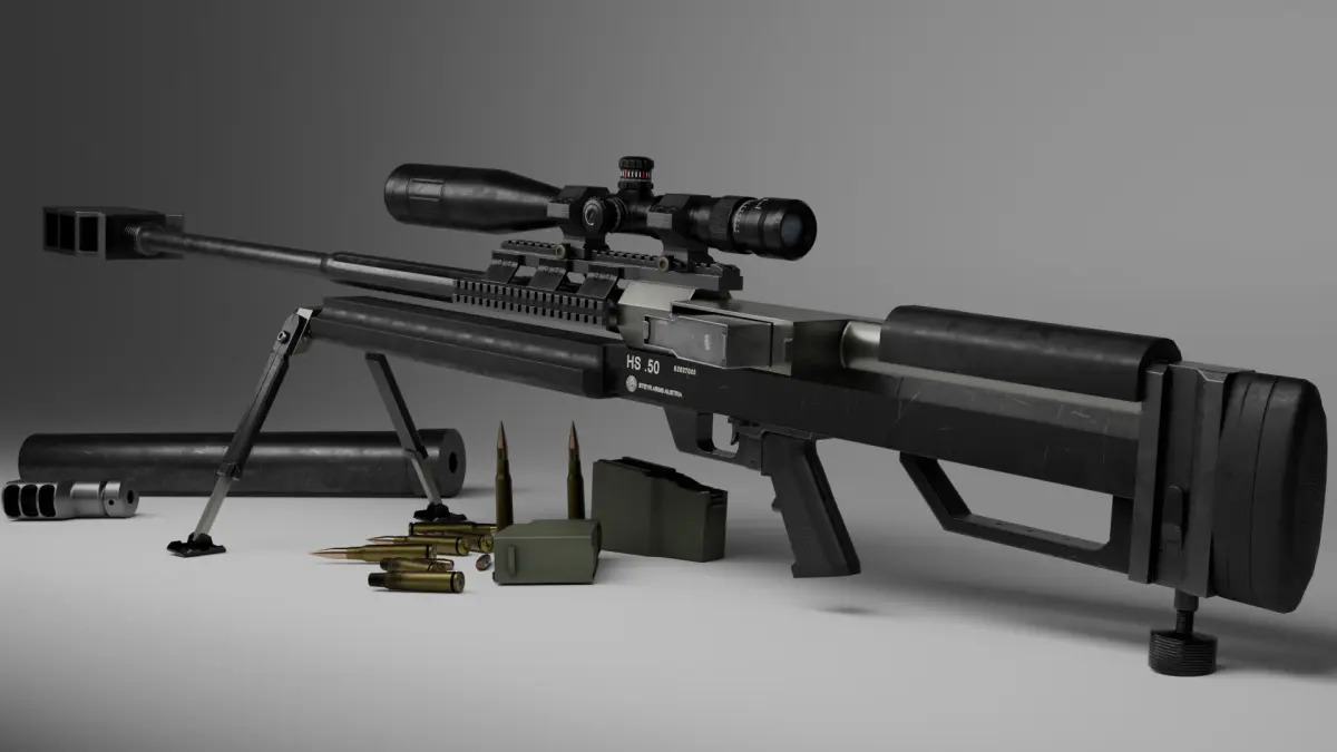 A game ready 3d model for a Steyr HS .50 . A high-performance, bolt-action, anti-material sniper rifle designed primarily for long-range precision targeting. It is chambered in .50 BMG, a powerful cartridge typically used for engaging hard targets, such as vehicles, equipment, and structures, as well as enemy personnel at extreme distances. it comes with standard and camouflaged version(clean and heavy used),textures : 1x4k texture for the main rifle 3x2k textures for the scope, muzzles, mag+ bullet