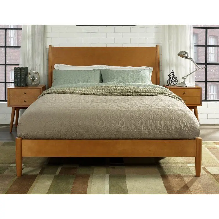 - Give your bedroom a modern, mid-century feel with this clean-lined bed frame. The solid and manufactured wood frame hints at subtle refinement, without overpowering your current decor.