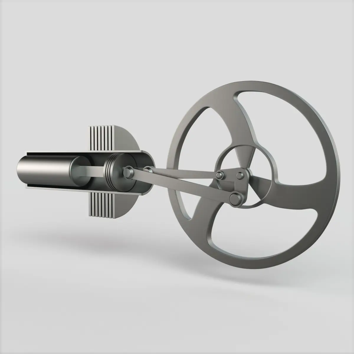 3D Model Stirling Engine. Clean topology based on quads. Geometry under the Smoothing. Modeling Autodesk Maya. All preview images are rendered with Maya render Redshift.