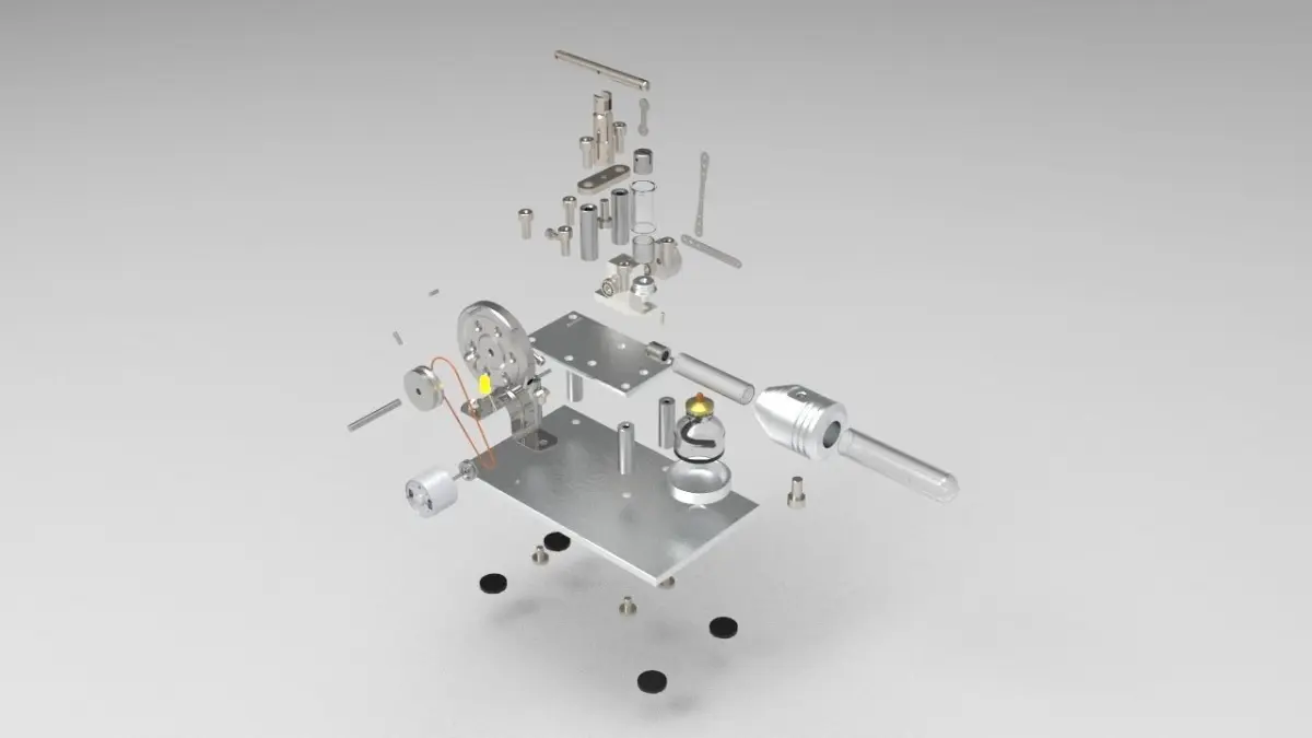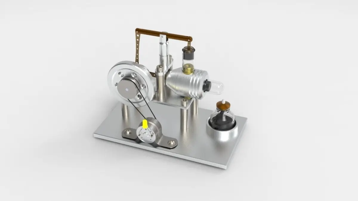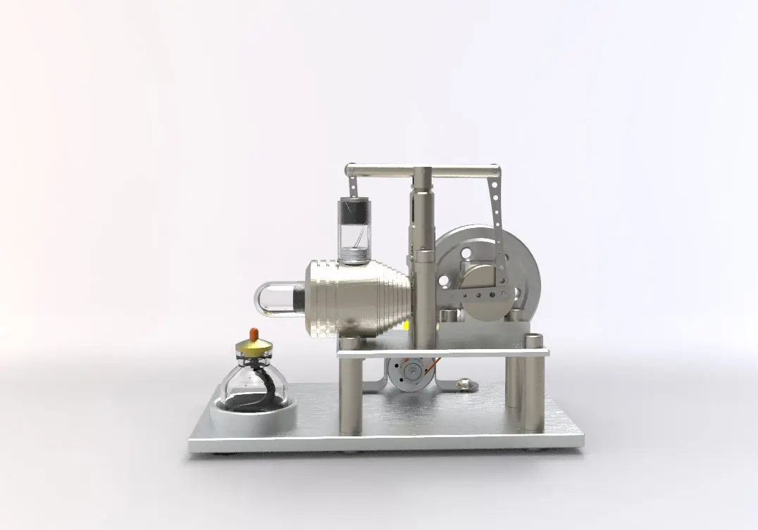 This is a 3D model of a Stirling engine. This model is modeled by the mechanical design software SolidWorks2018. The attachment contains SolidWorks source files and a variety of common format files. The format stl format in the common file supports 3d printing.