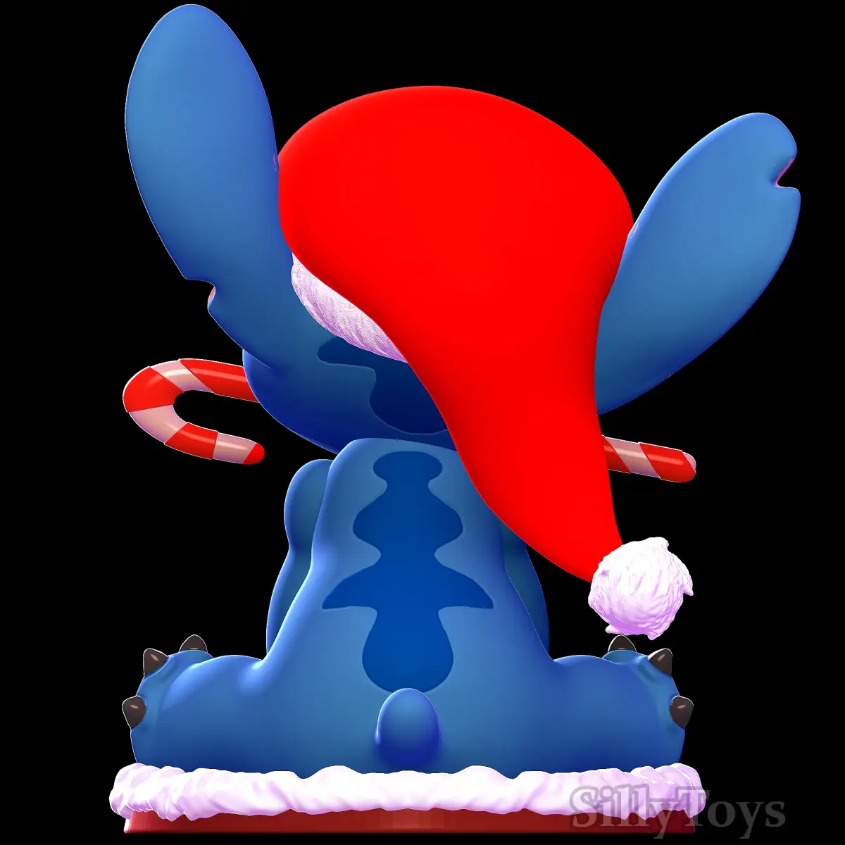 Stitch, from Lilo & Stitch, is a small blue alien with big ears and a mischievous personality. He's known for causing trouble but also has a soft side and cares a lot about his family. When he's in a Christmas costume, he still looks playful and full of energy, bringing his fun personality to the holiday season.