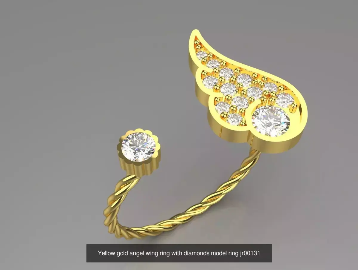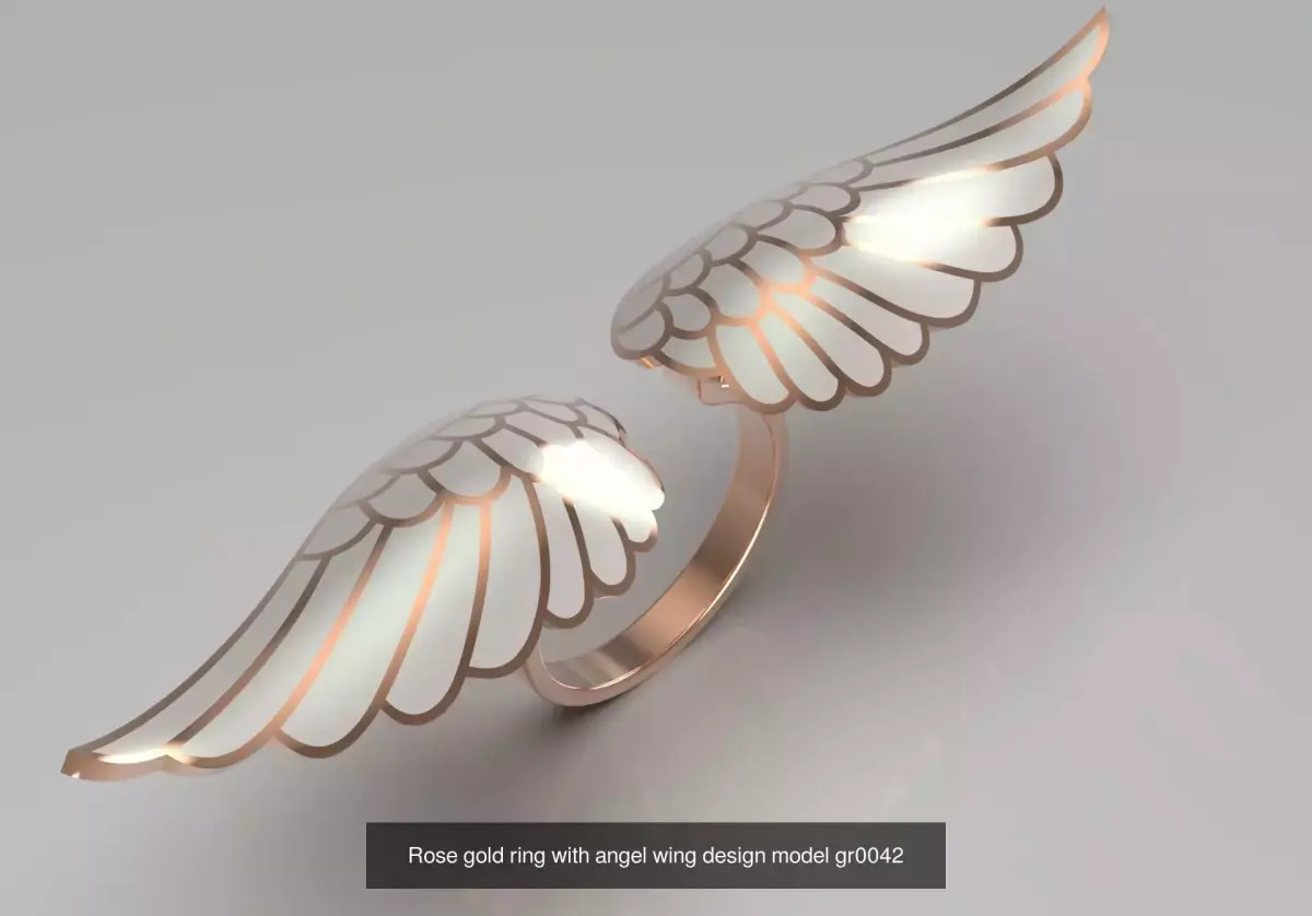 JR00233 (Wing Wrap Ring): A ring with two wings wrapped around the finger in an interlocking or crisscross pattern, creating an artistic, three-dimensional design.