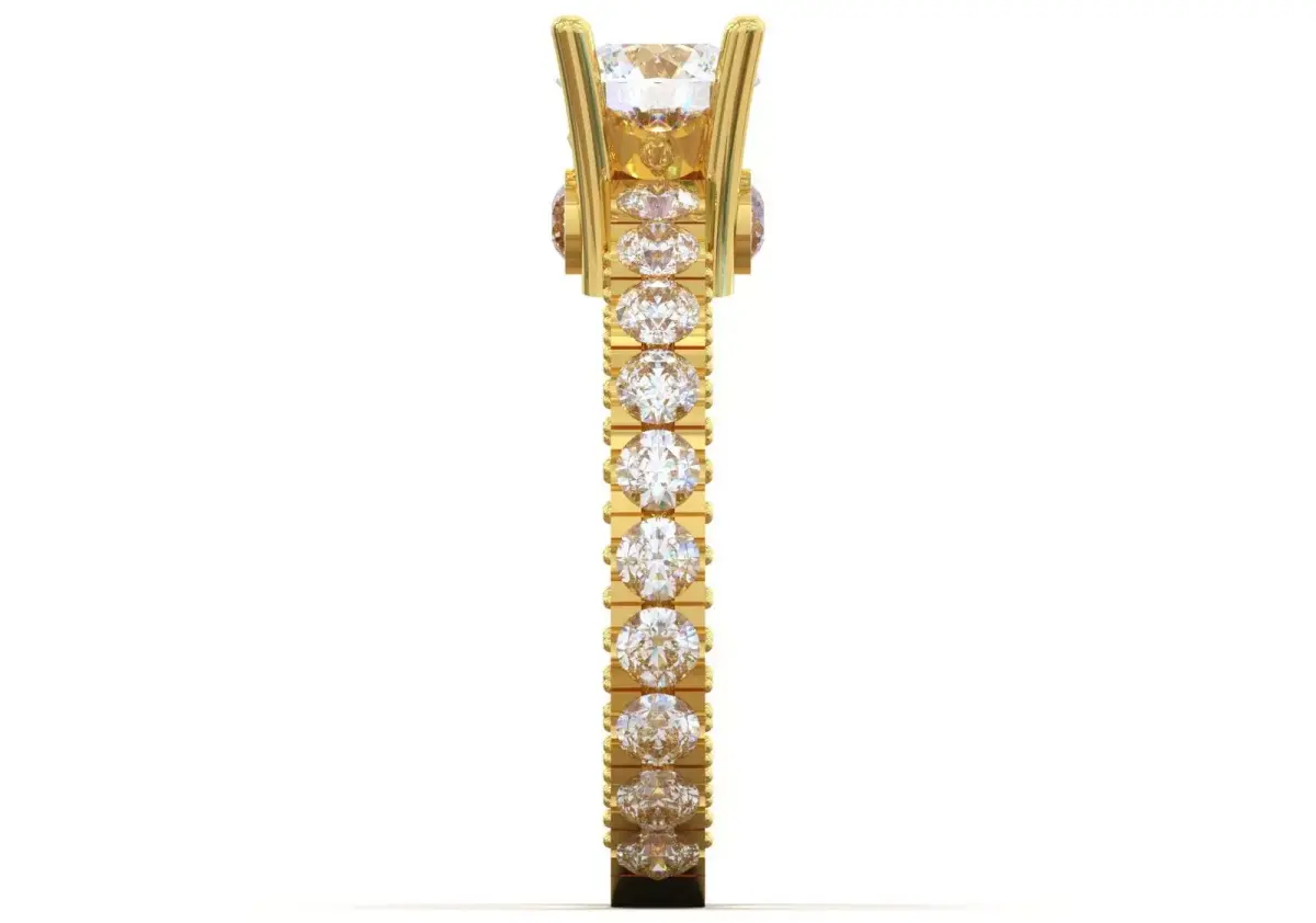 Shiny Yellow Gold Metal: The entire structure of the ring is made of shiny, polished yellow gold, which adds warmth and a classic look to the dazzling sparkle of the diamonds.
