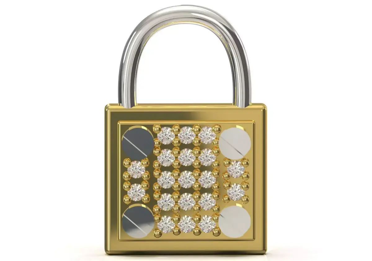 - Base Metal: The lock body is made of polished, shiny yellow gold, which creates a beautiful contrast with the silver ring.