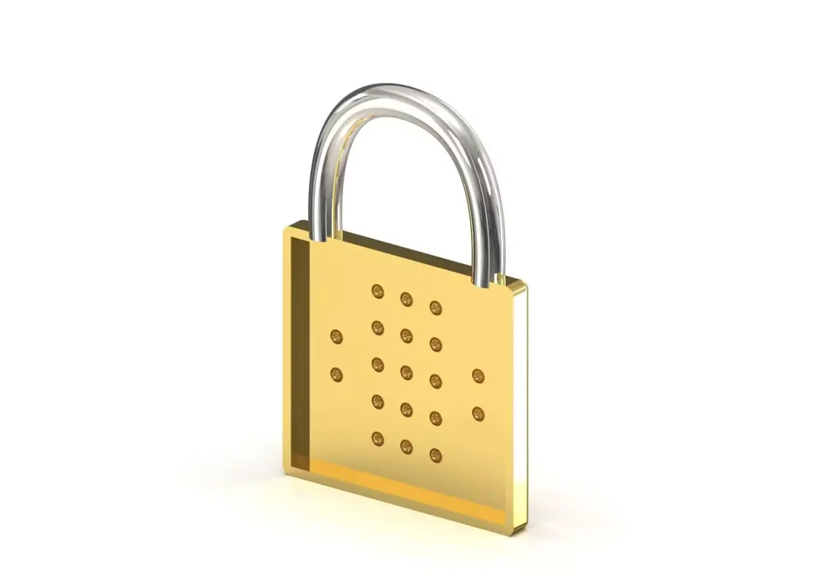 - Body: The main body of the lock is made in the shape of a thick, polished rectangle with slightly rounded corners.