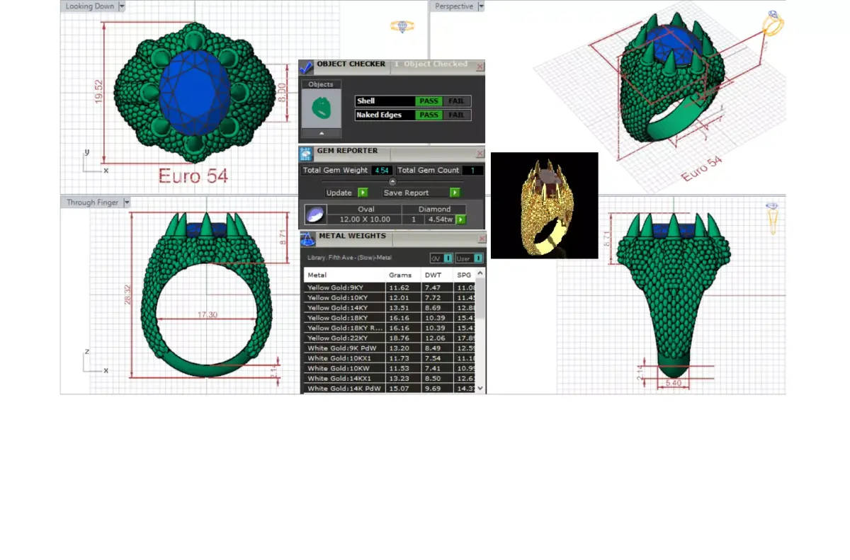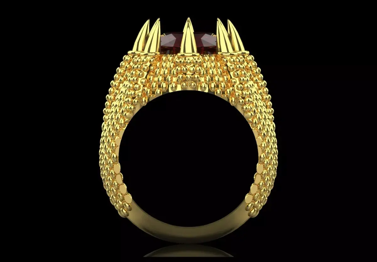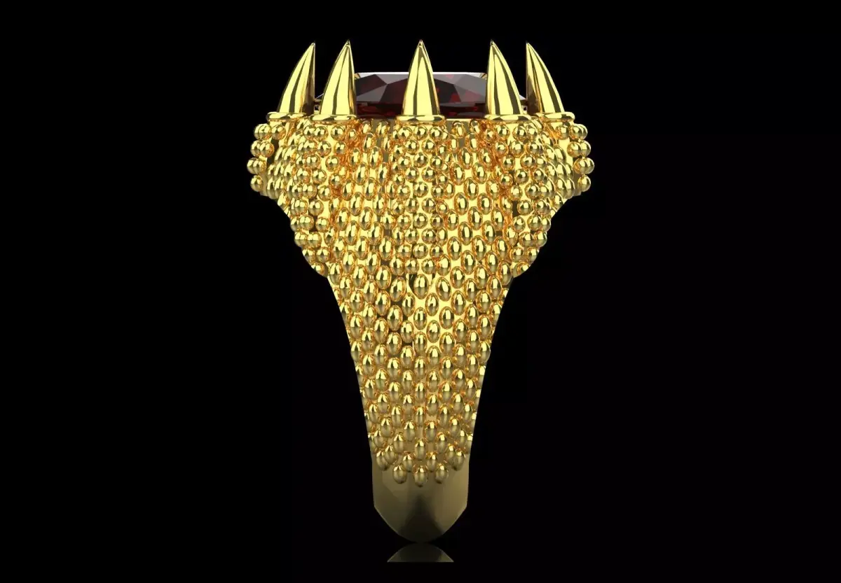 - Sharp prongs: The gemstone is held by sharp, long prongs that resemble dragon teeth or claws.