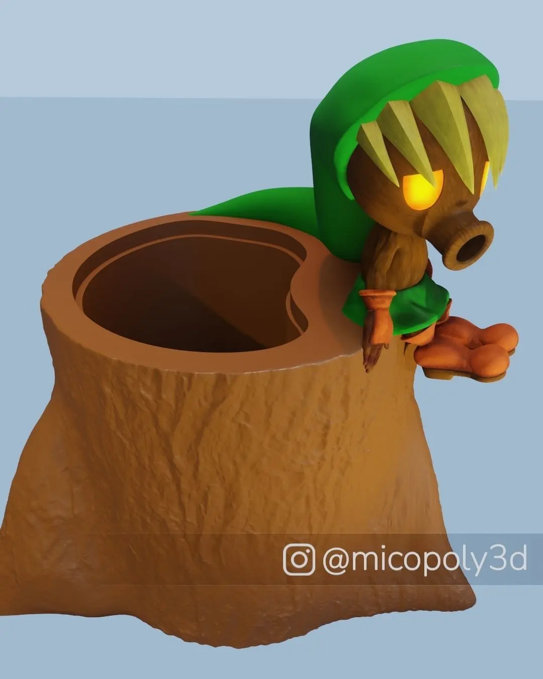 A model inspired in Deku Link from The Legend of Zelda Majora's Mask. This model is a pen holder with an optional top to make it a small chest where you can store little things.