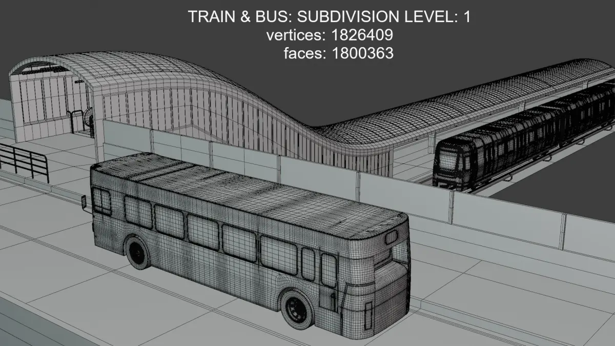- Train and bus models are ready for subdivision.