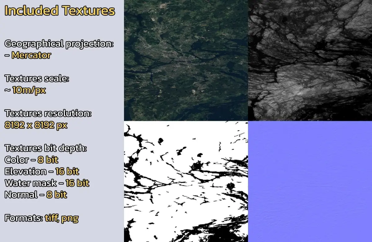 - Textures resolution: ~10m/px