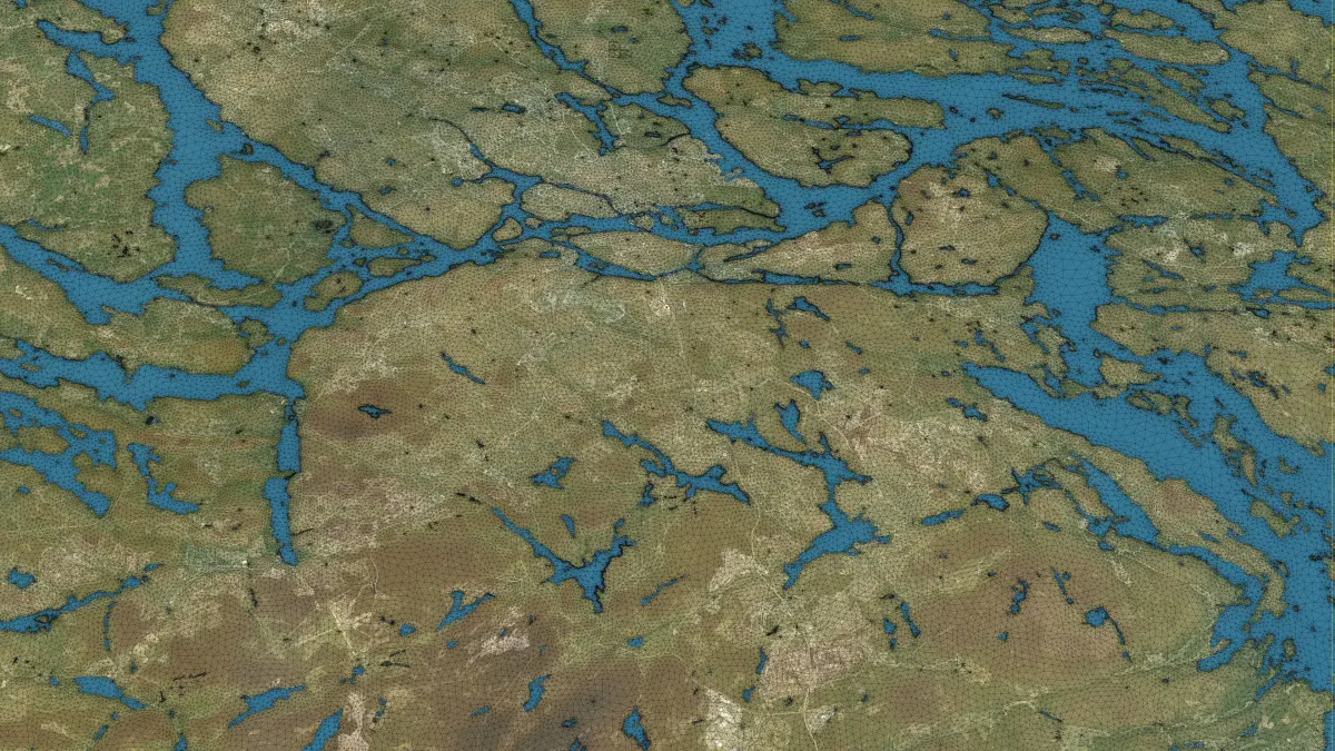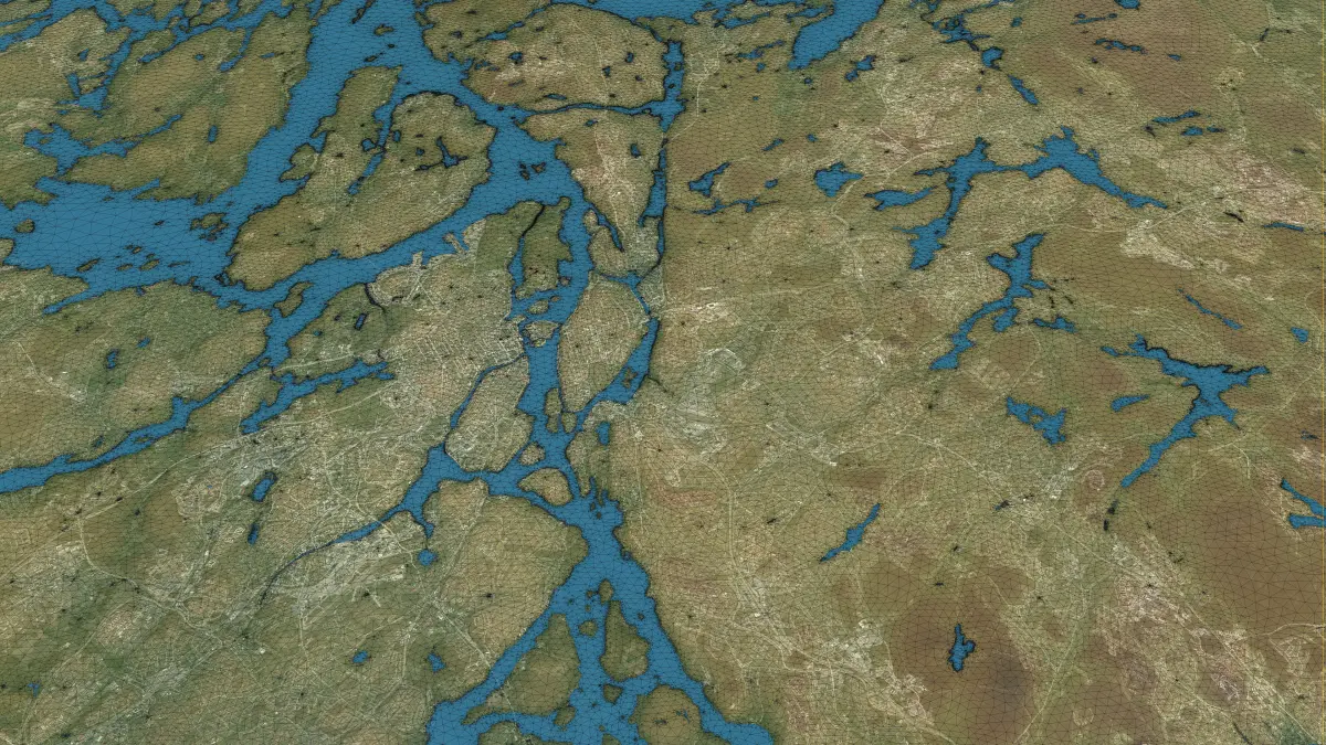 - Separate Land Surface and Water Bodies — Two distinct mesh objects with precise shorelines for realistic water features