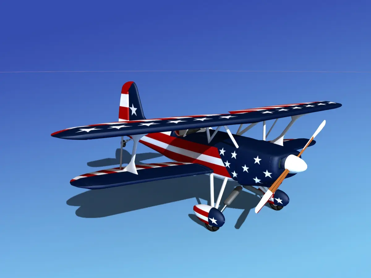 Accurate 3d model created near to scale (within 5%) according to the real reference.Native format is 3ds Max version 7. Model was exported to a wide variety of formats including. Other formats are exported in one resolution. This can be further subdivided. Exported formats (3ds, lwo and obj) are prepared well to work correctly with every standard modeling software. Compatibility level with other software’s may be limited.Textures are not included with VBM version.It includes a detailed cockpit with instrumentation and controls. The instrumentation and controls for the single cockpit are modeled and textured. It has animateable ailerons, elevators, rudder, propeller, and landing gear spring and roll.Previews were rendered using 3dsmax standard scanline.Model unit is variable depending on the model and references.The Stolp-Adams SA-100 Starduster is a U.S. single seat sport biplane.