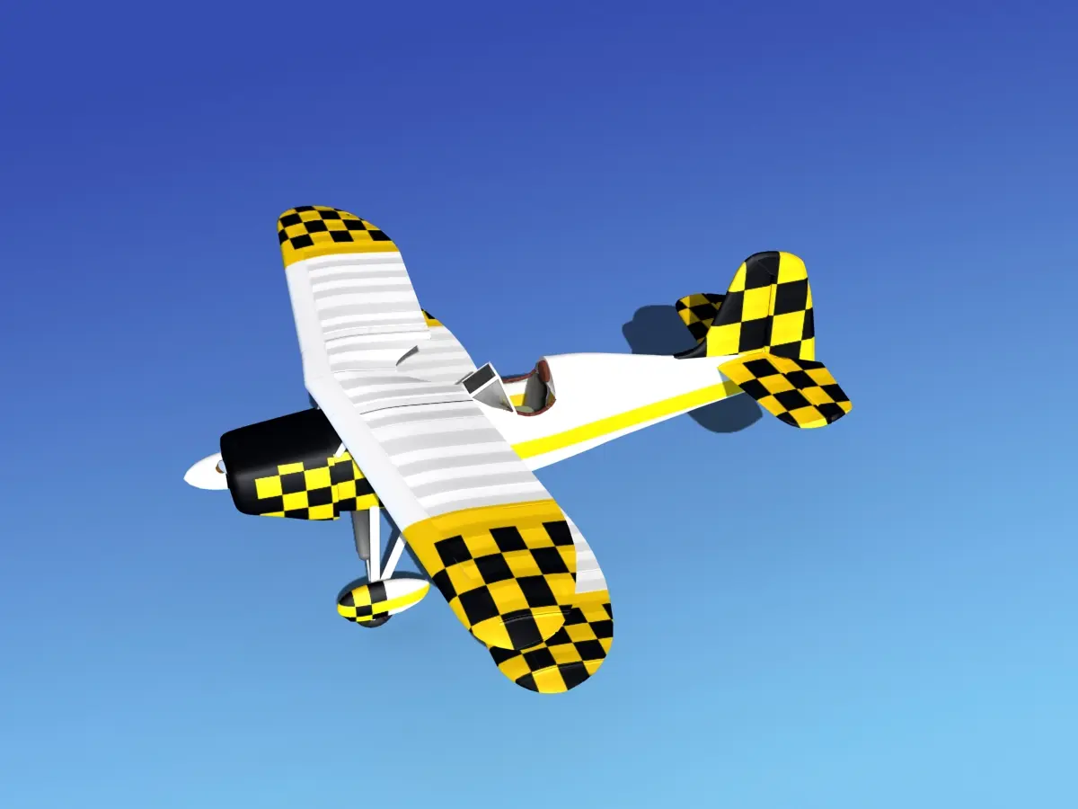 Starduster is built very near to scale, within a few inches of actual general dimensions and fully textured. It includes a detailed cockpit with instrumentation and controls. The instrumentation and controls for the single cockpit are modeled and textured. It has animateable ailerons, elevators, rudder, propeller, and landing gear spring and roll. This model comes in 11 different formats.