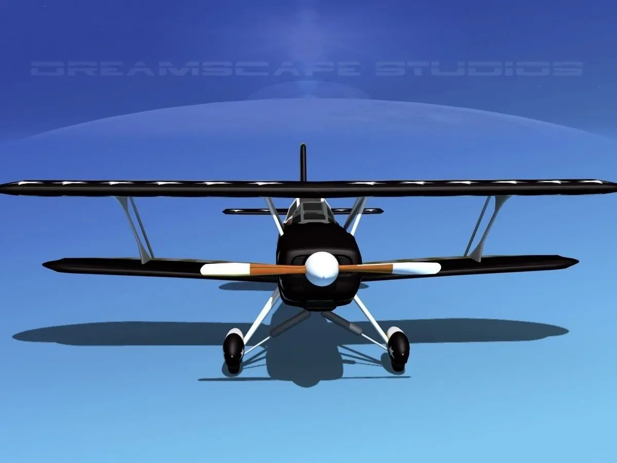 Starduster Too is built very near to scale, within a few inches of actual general dimensions and fully textured. It includes a very detailed cockpit with instrumentation and controls. Instrumentation and controls are modeled in front and rear cockpits. It also has animateable ailerons, elevators, rudder, propeller, and landing gear spring and roll. This model comes in 11 different formats.