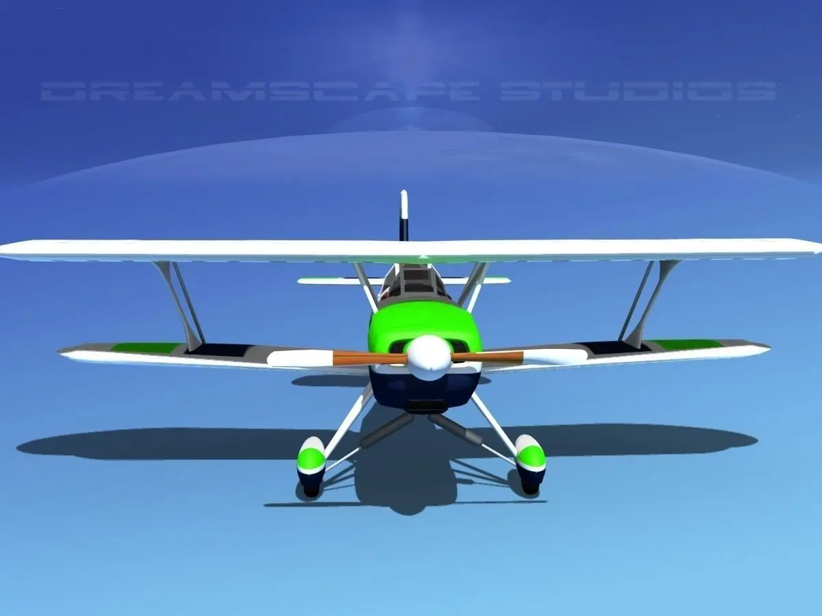 Starduster Too is built very near to scale, within a few inches of actual general dimensions and fully textured. It includes a very detailed cockpit with instrumentation and controls. Instrumentation and controls are modeled in front and rear cockpits. It also has animateable ailerons, elevators, rudder, propeller, and landing gear spring and roll. This model comes in 11 different formats.