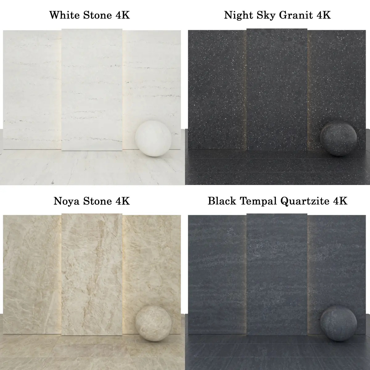 6 Texture Black Tempal Quartzite with Glossiness Maps