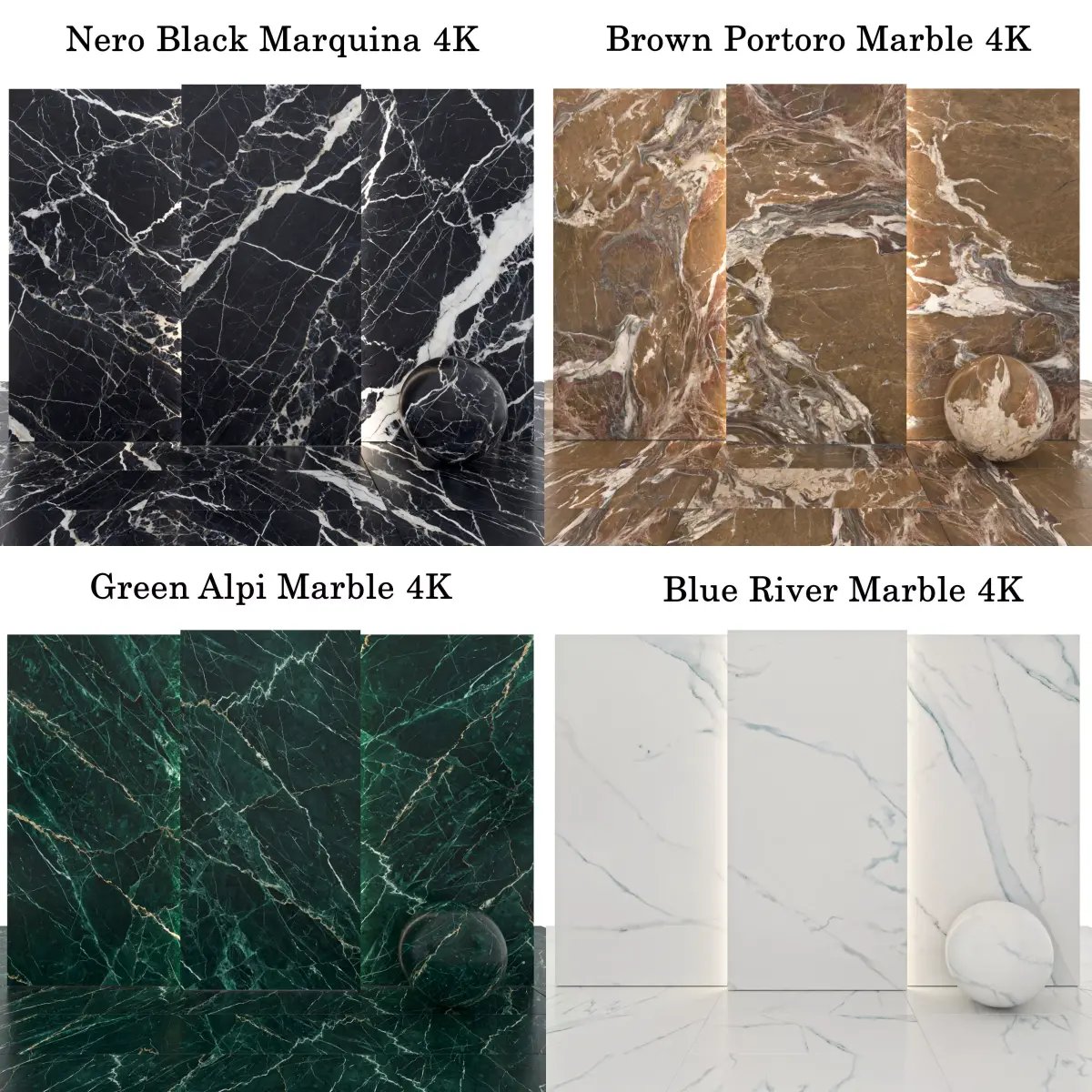 3 Green Alpi Marble texture with Glossiness Mapss