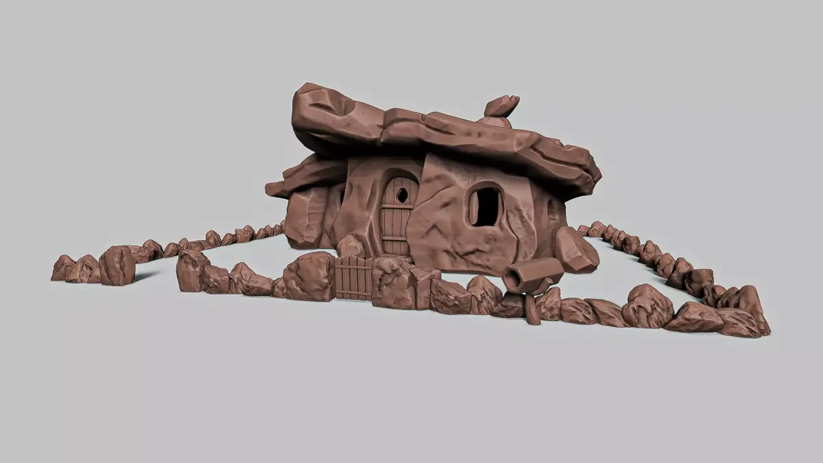 Add a unique prehistoric atmosphere to your 3D printing collection with this stylized stone-age house.Designed in a playful cartoon style, this primitive rock home features rough sculpted stone walls, organic shapes and a massive stone roof that perfectly capture the charm of ancient fantasy architecture.