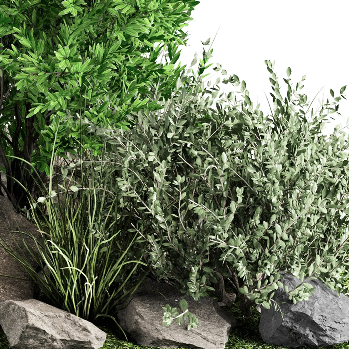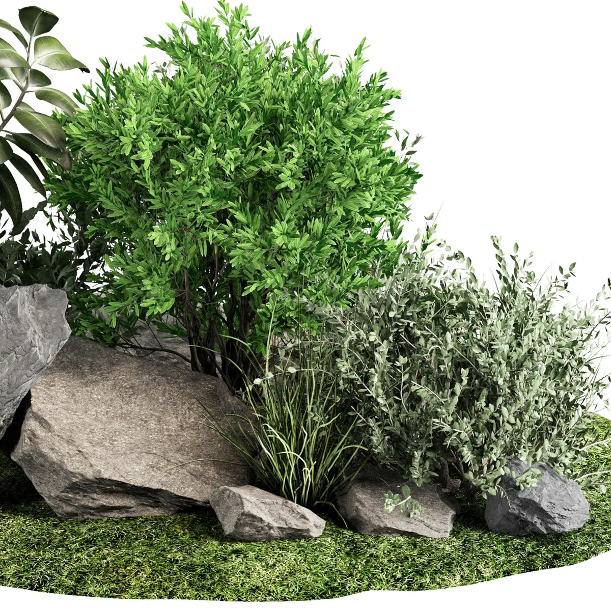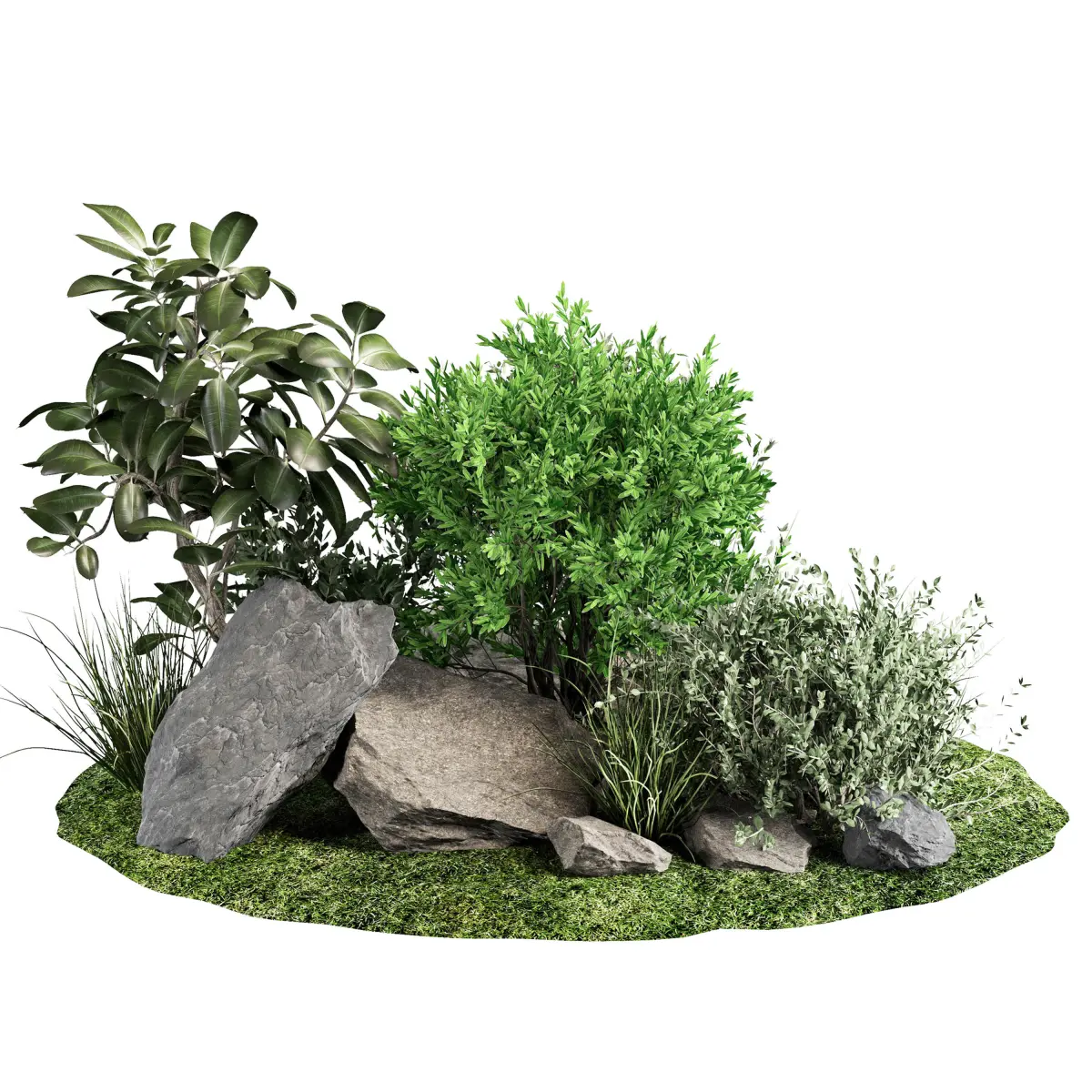 The set of stones with plants for decorating exteriors, adjoining territories and landscaping. The model includes: .MAX, .MTL, .OBJ files.