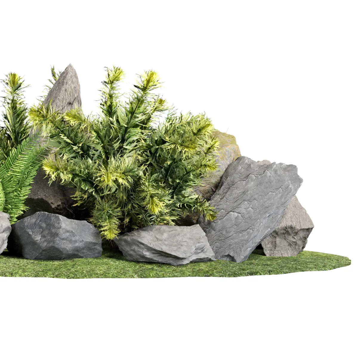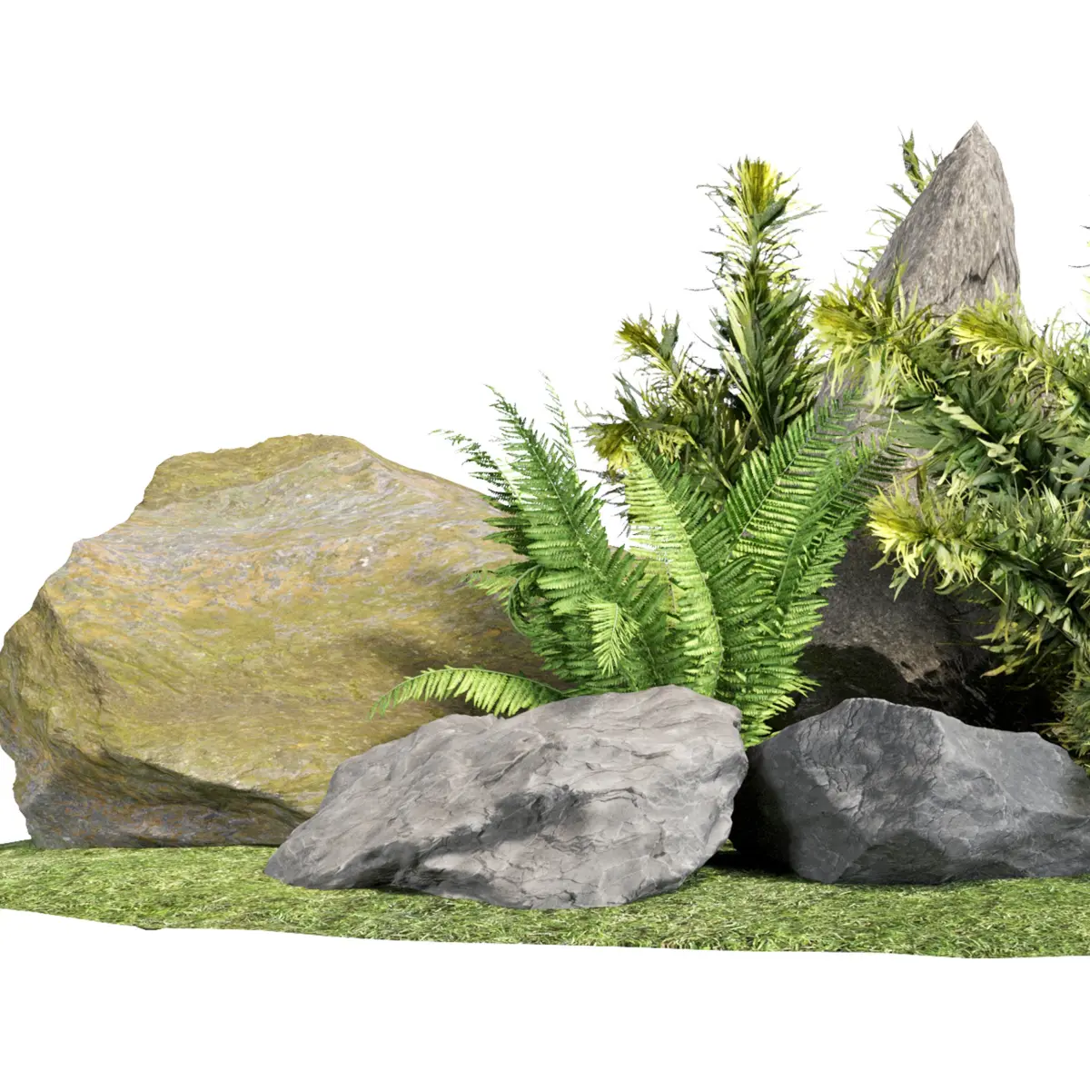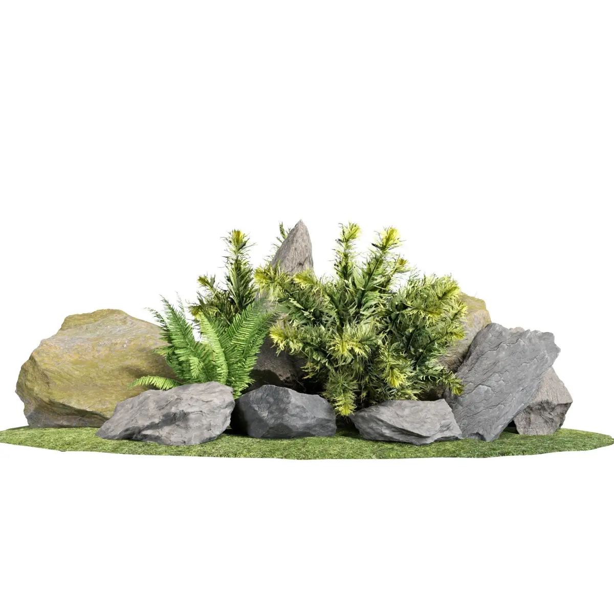 The set of stones with plants for decorating exteriors, adjoining territories and landscaping. The model includes: .MAX, .MTL, .OBJ files.